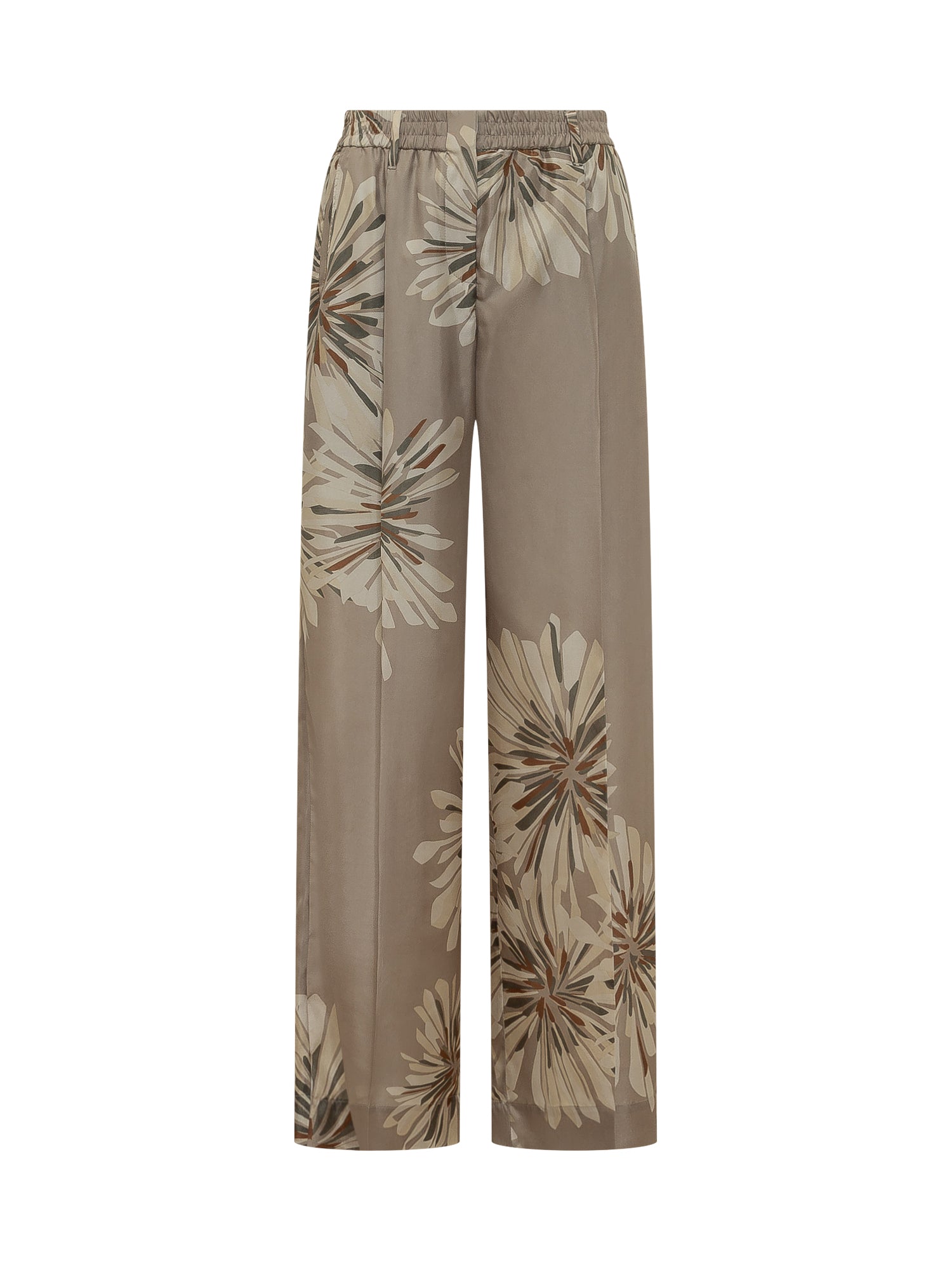 Long wide-leg trousers featuring an all-over floral print. Elasticated waistband for optimal comfort and a fluid silhouette-enhancing fit. Perfect for elegant and relaxed summer looks.