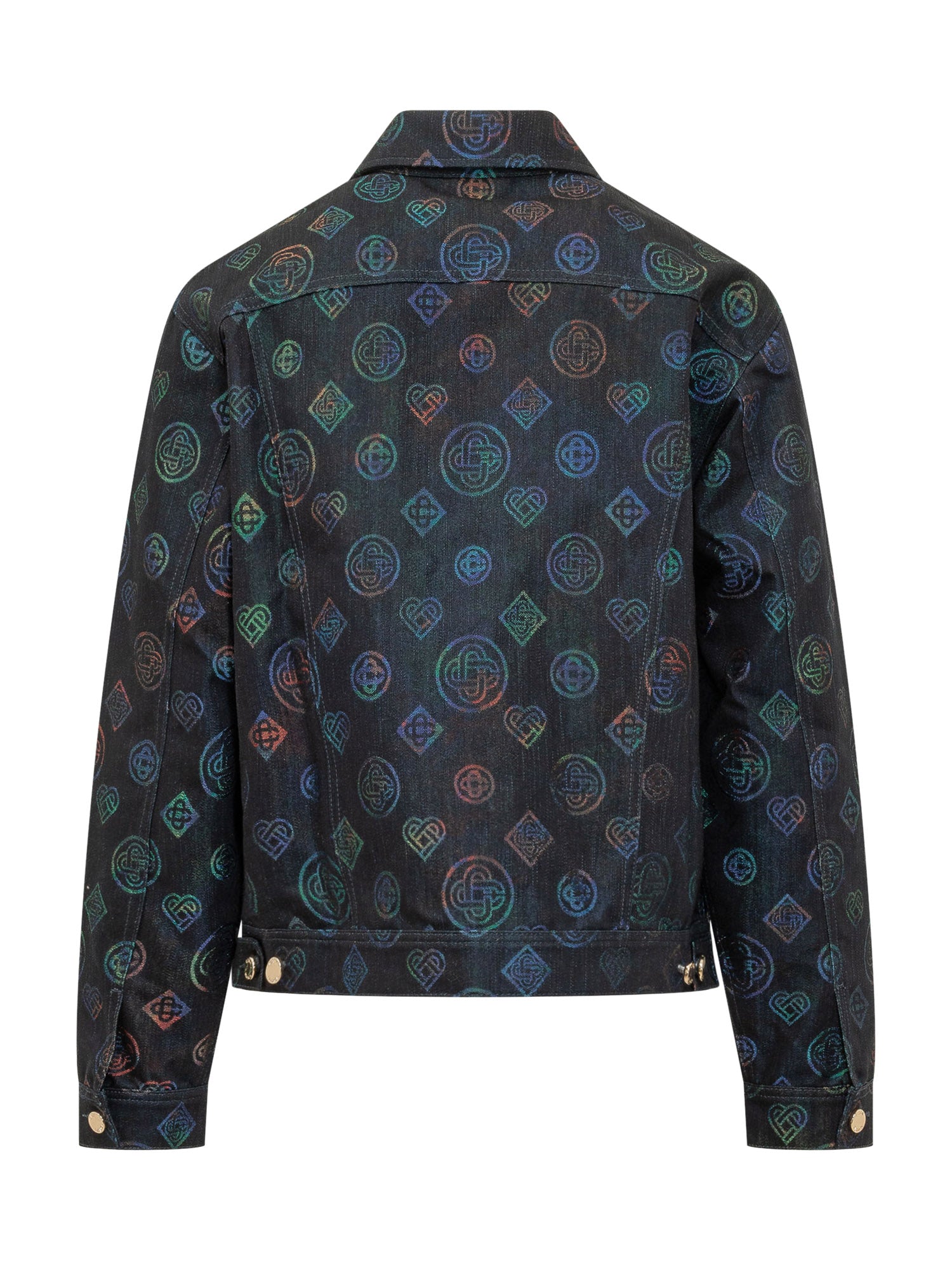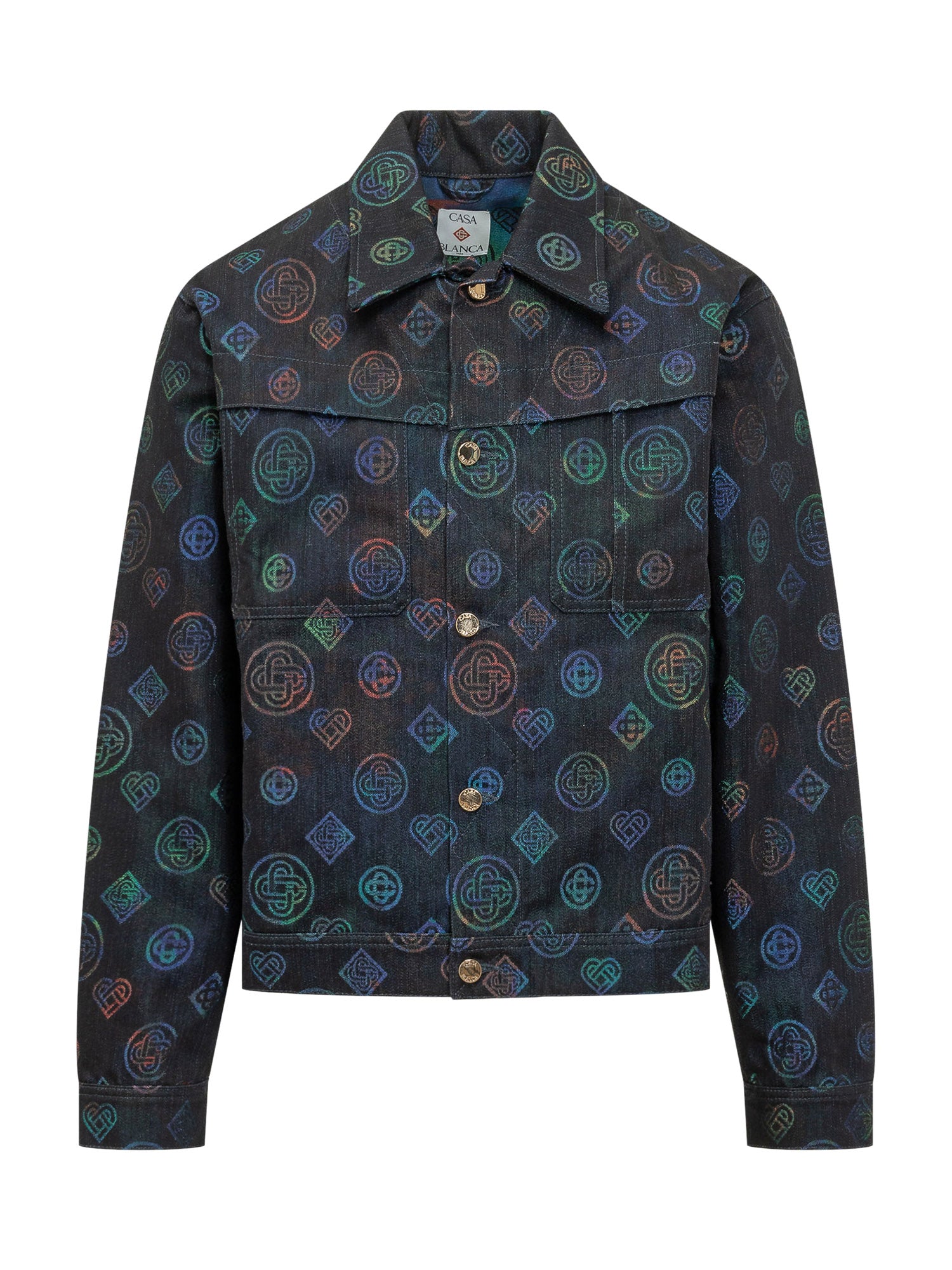 Trucker style jacket with allover print, button closure, two chest pockets, buttoned cuffs.
