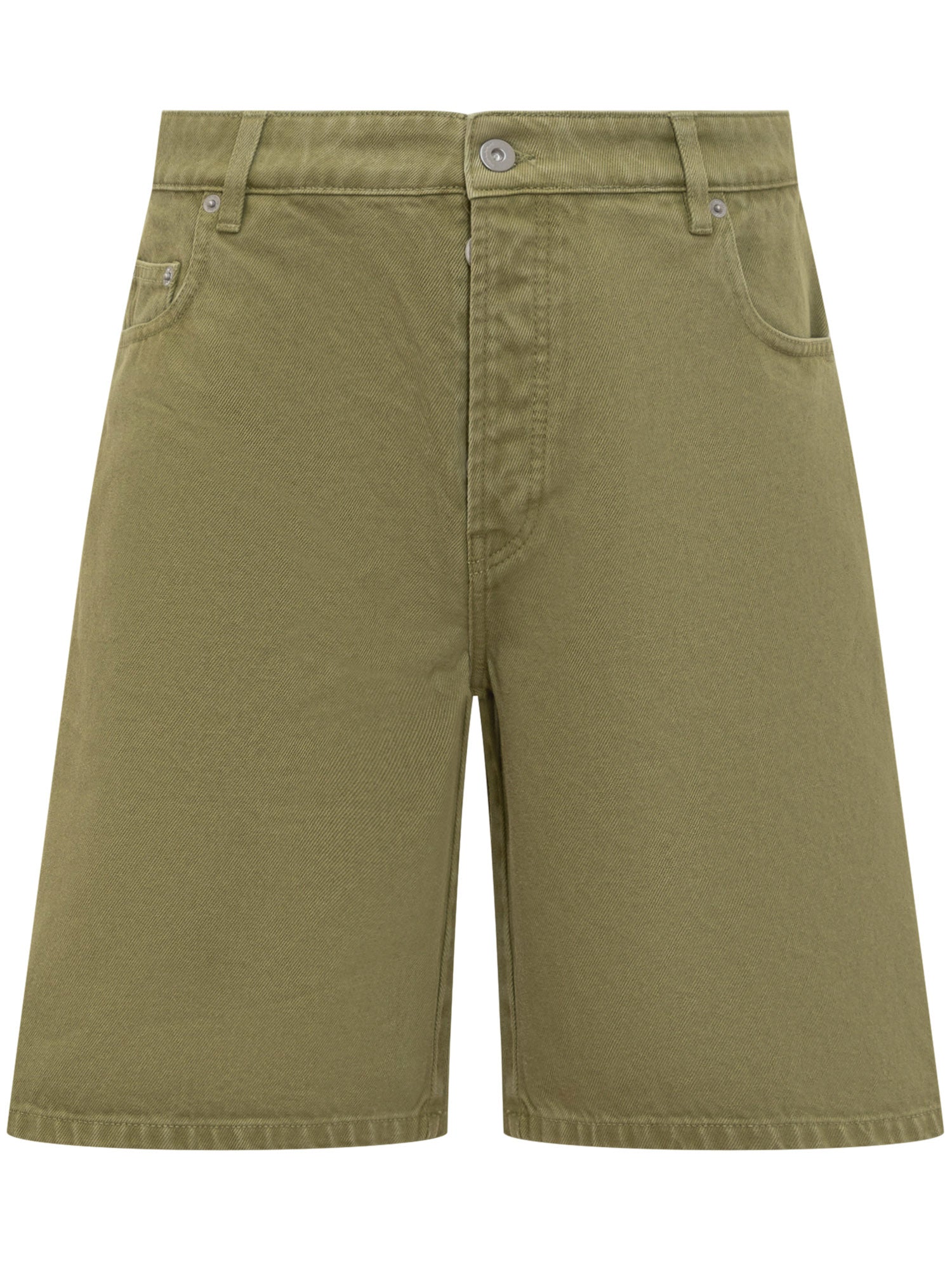 Cotton shorts. Button closure. Belt loops. Five pockets. Logo on the back.