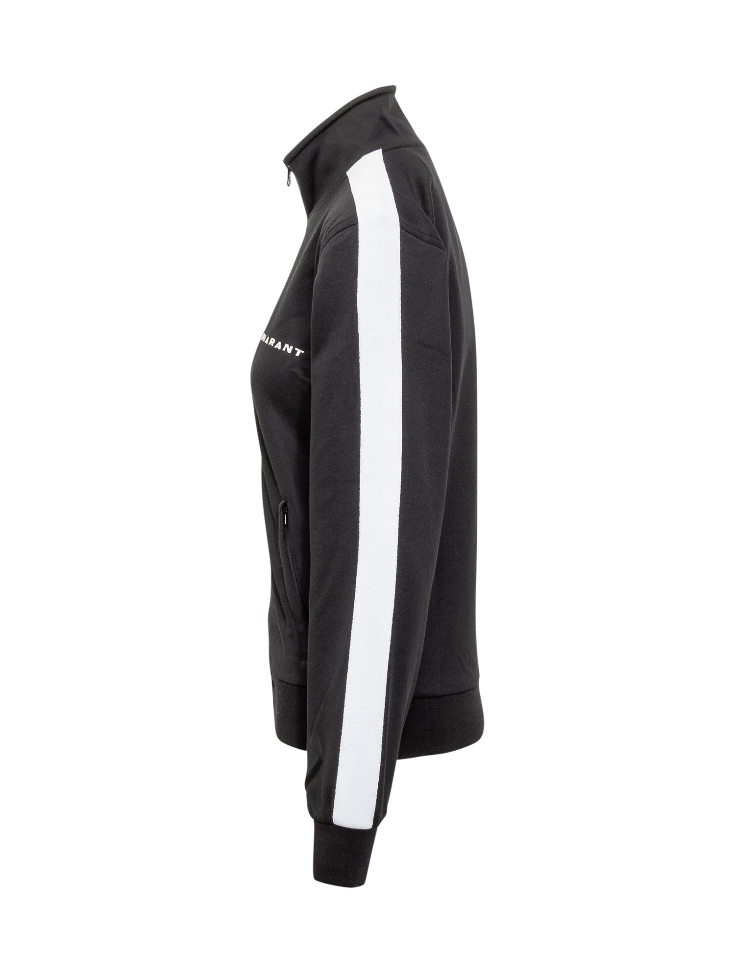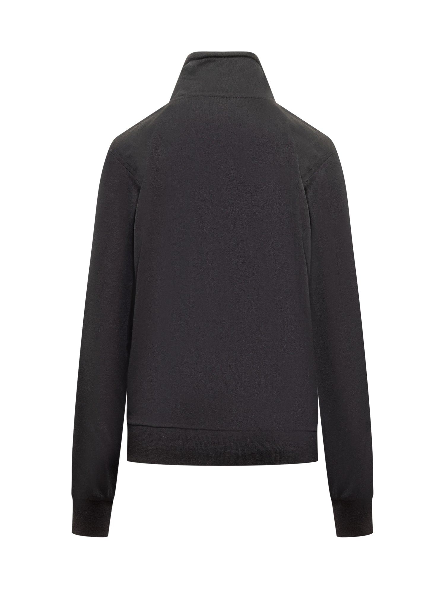 Long-sleeved sweatshirt. High collar. Zipper closure. Ribbed hems. Two side pockets. Printed logo on front.