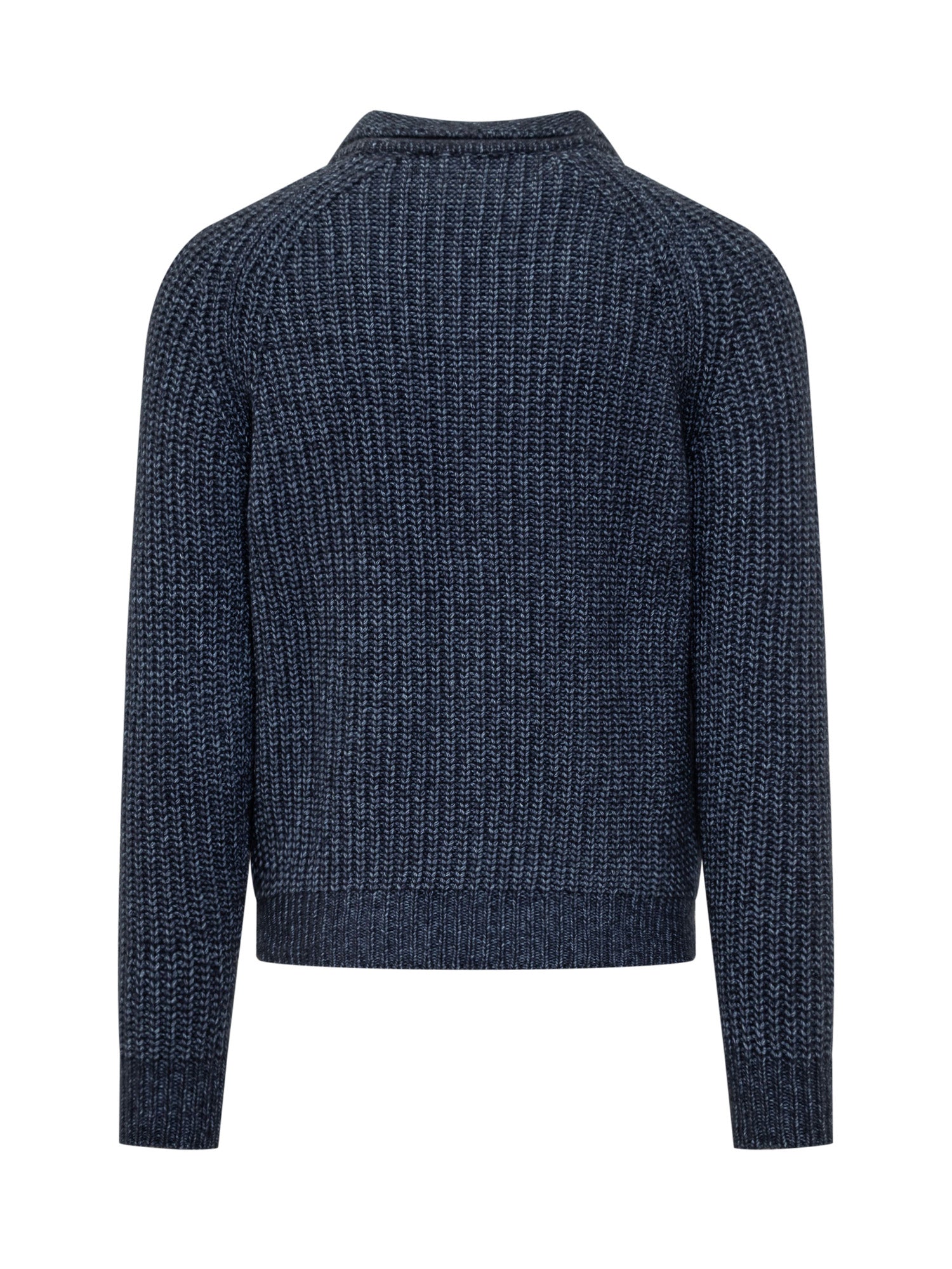 Lorenzoni blue mélange wool cardigan featuring zip closure and classic collar.
