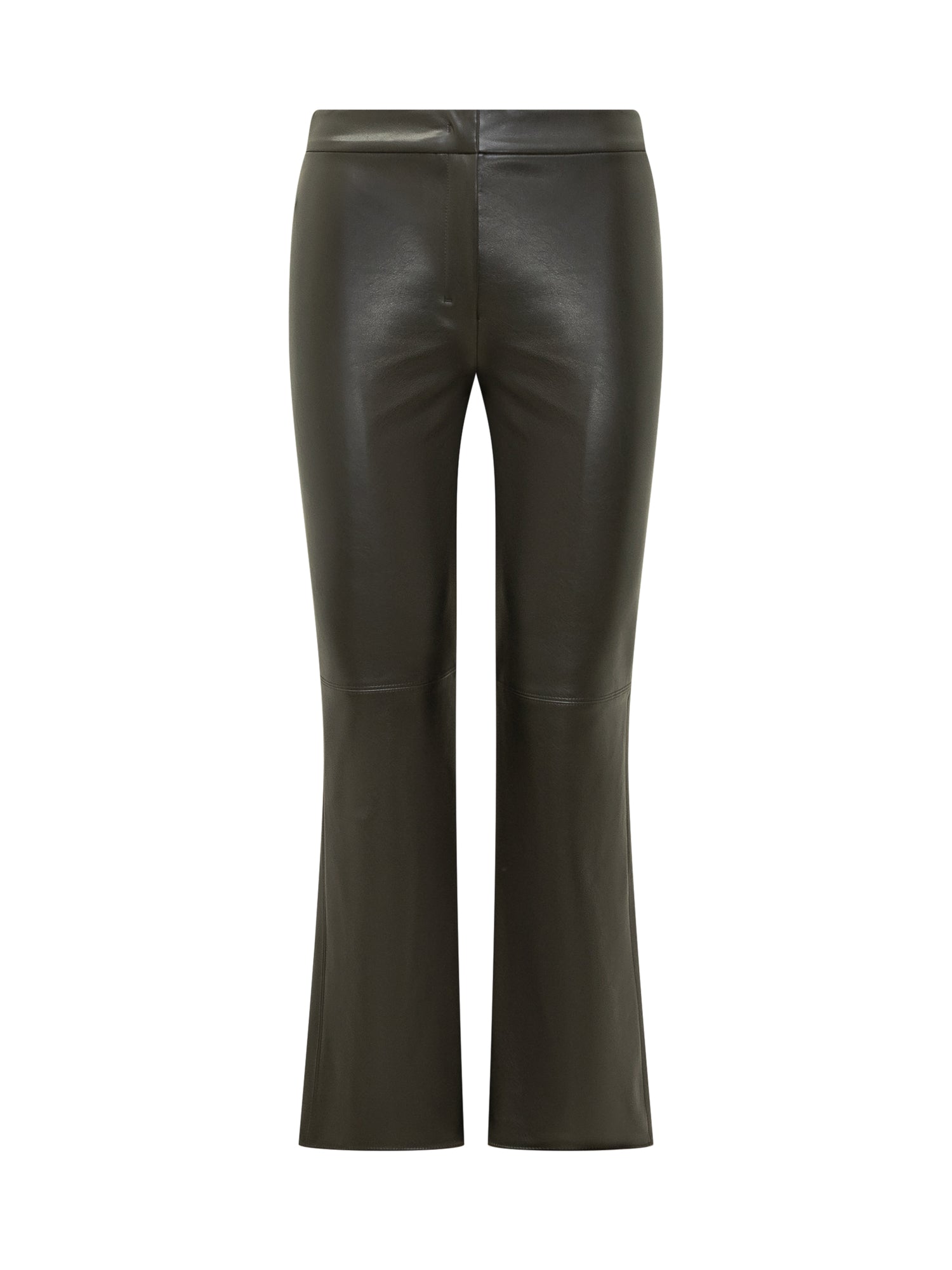 Max Mara Studio black leather pants with a slim fit and slightly flared hem.