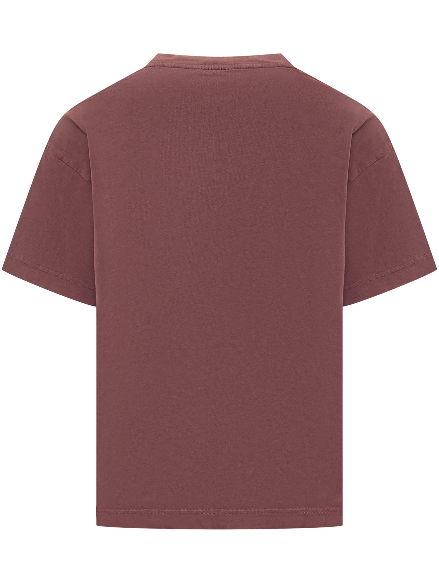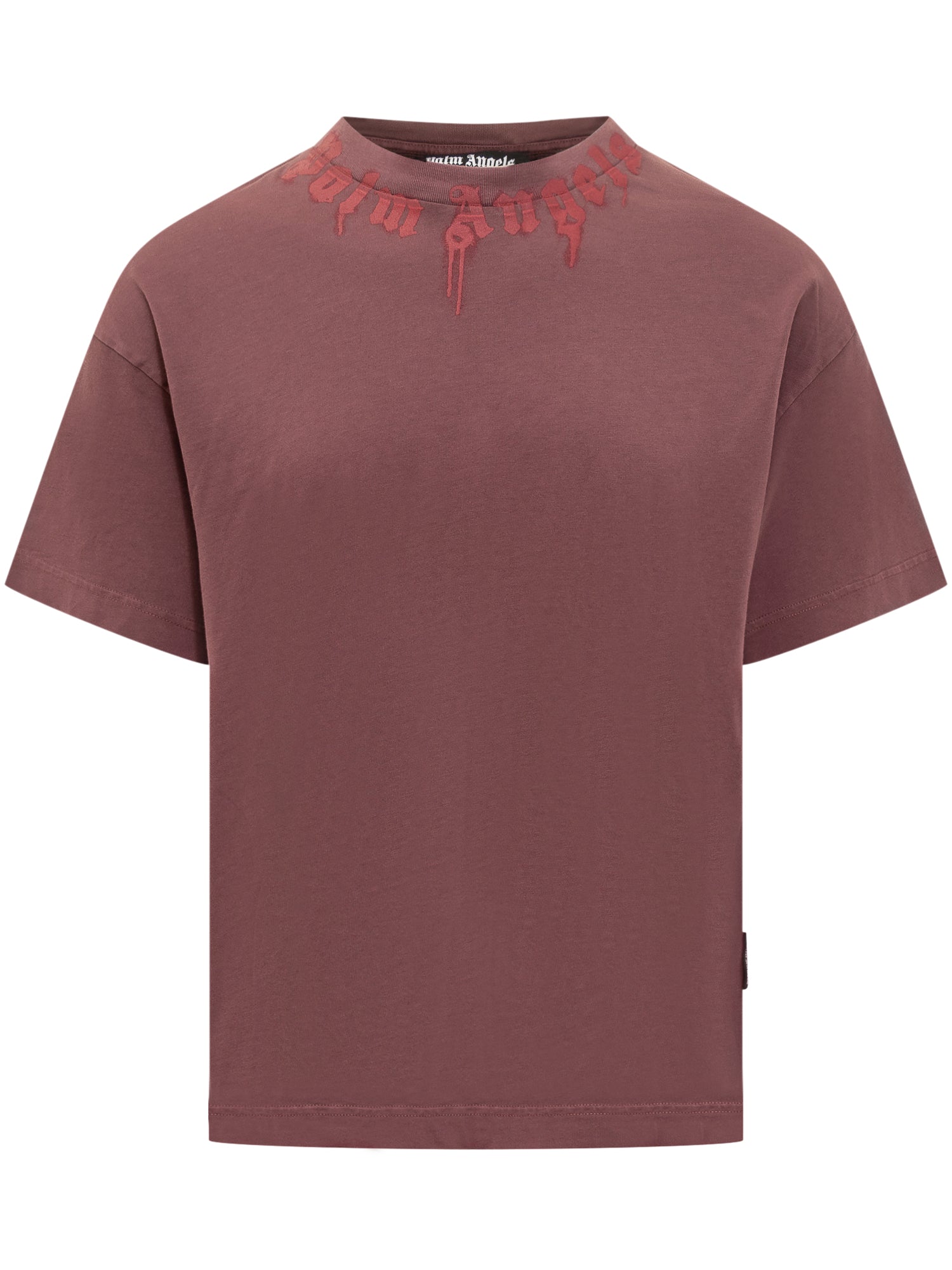 Palm Angels bordeaux cotton T-shirt with iconic gothic logo printed around the neckline.