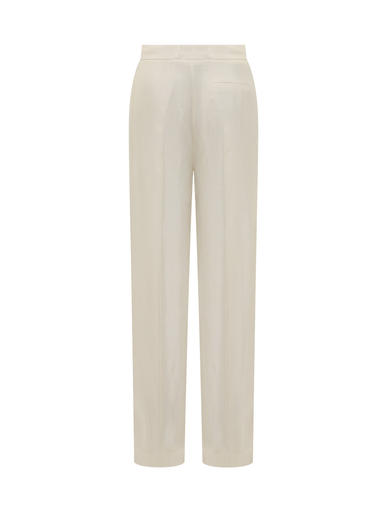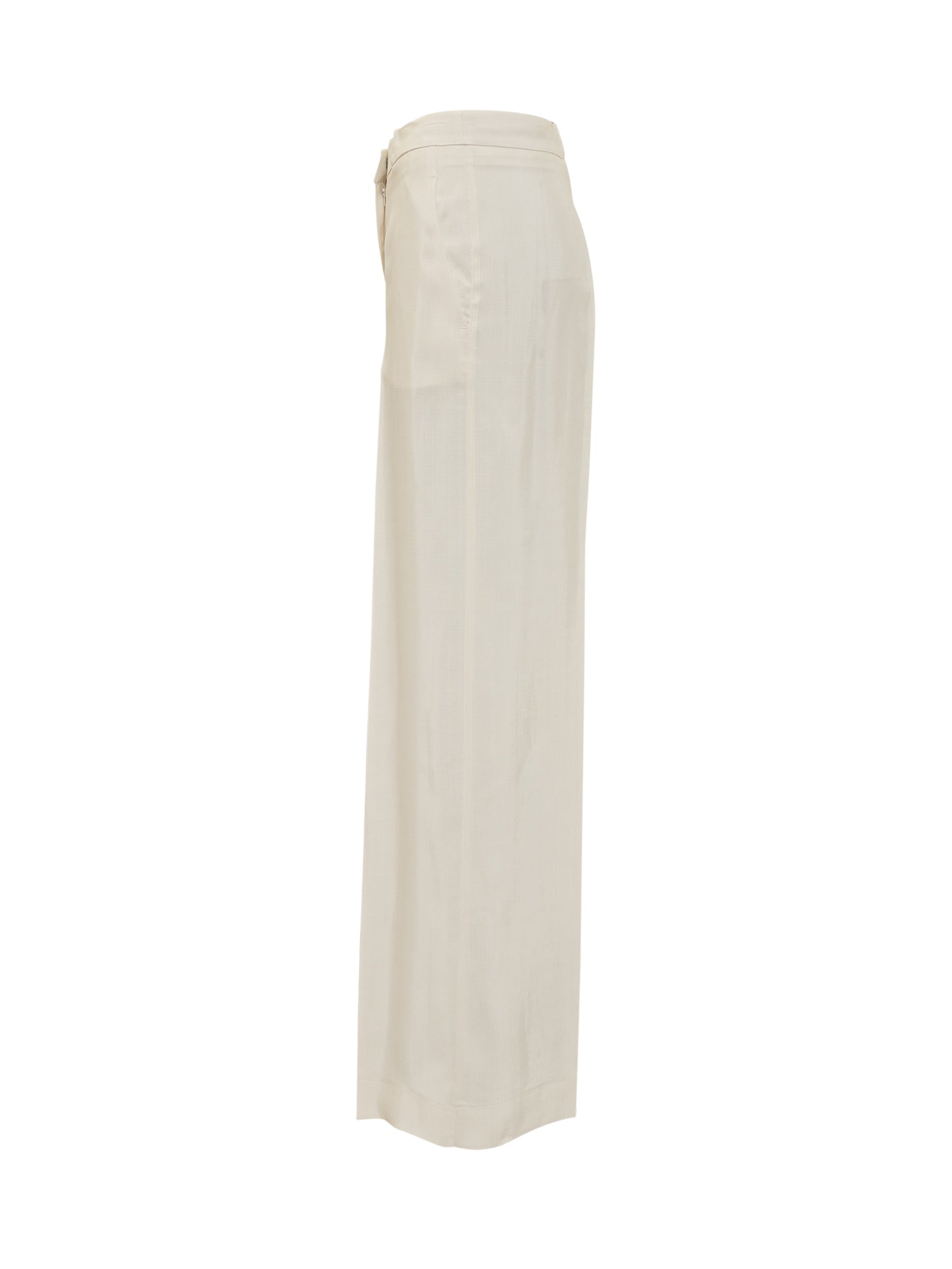 Long pants with wide leg. Zipper and hook-and-eye closure. Two side pockets. One welt pocket at back. Ironed pleat. Tartan plaid pattern.