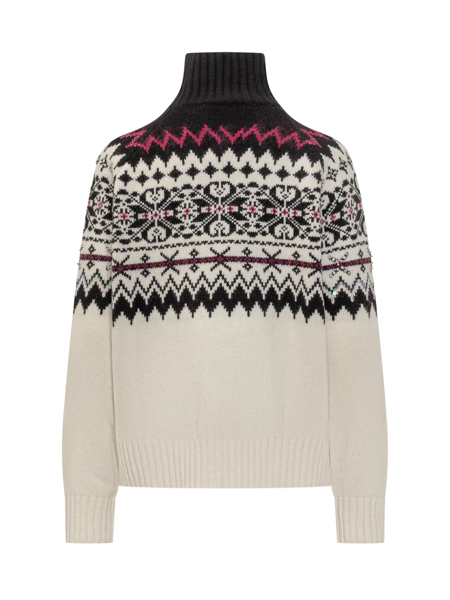 Semicouture Annie turtleneck in soft wool with multicolor jacquard design.