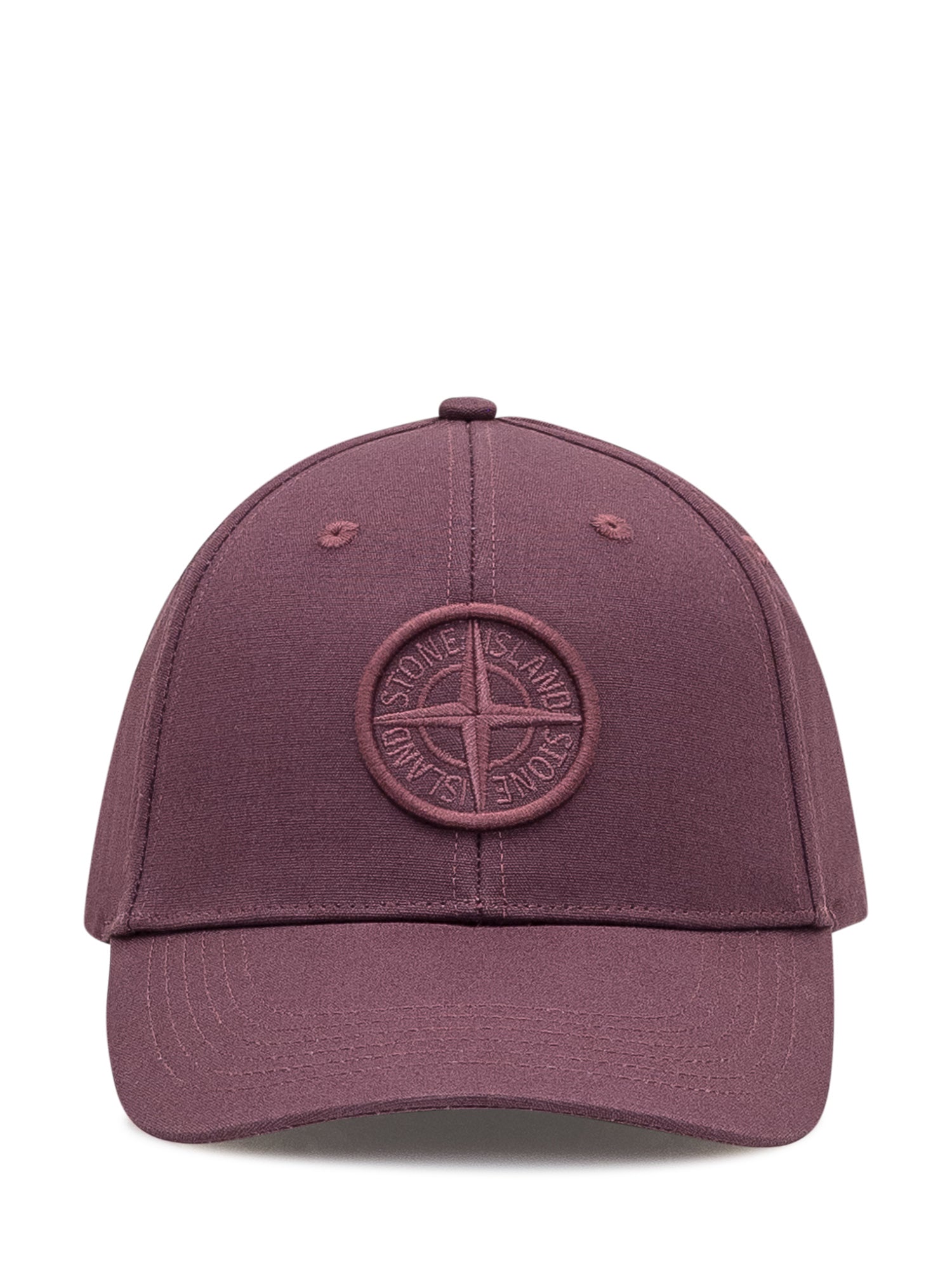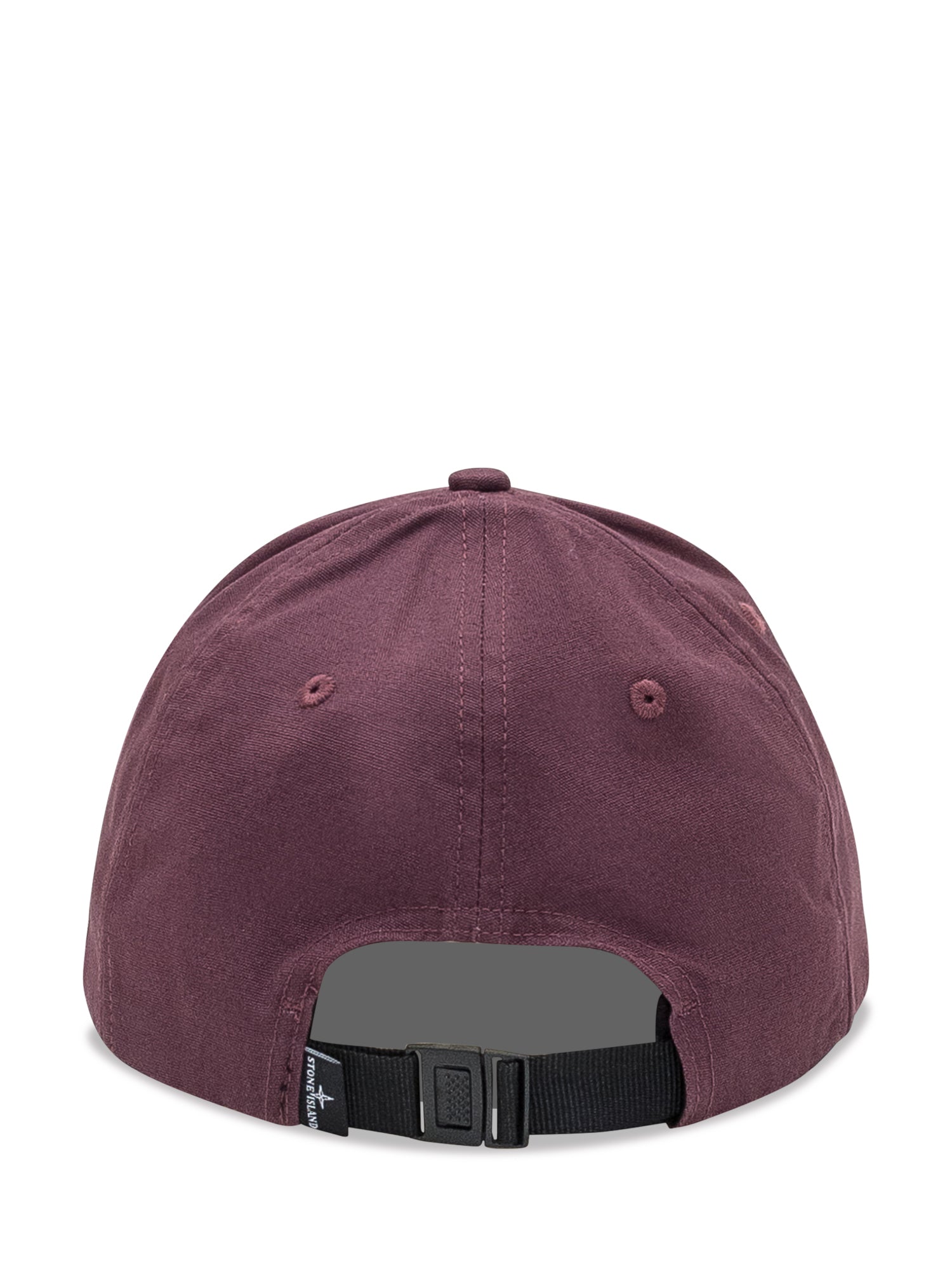 Stone Island cotton cap in burgundy, featuring the iconic tone-on-tone embroidered logo on the front. Adjustable back strap, perfect for a casual and distinctive look.