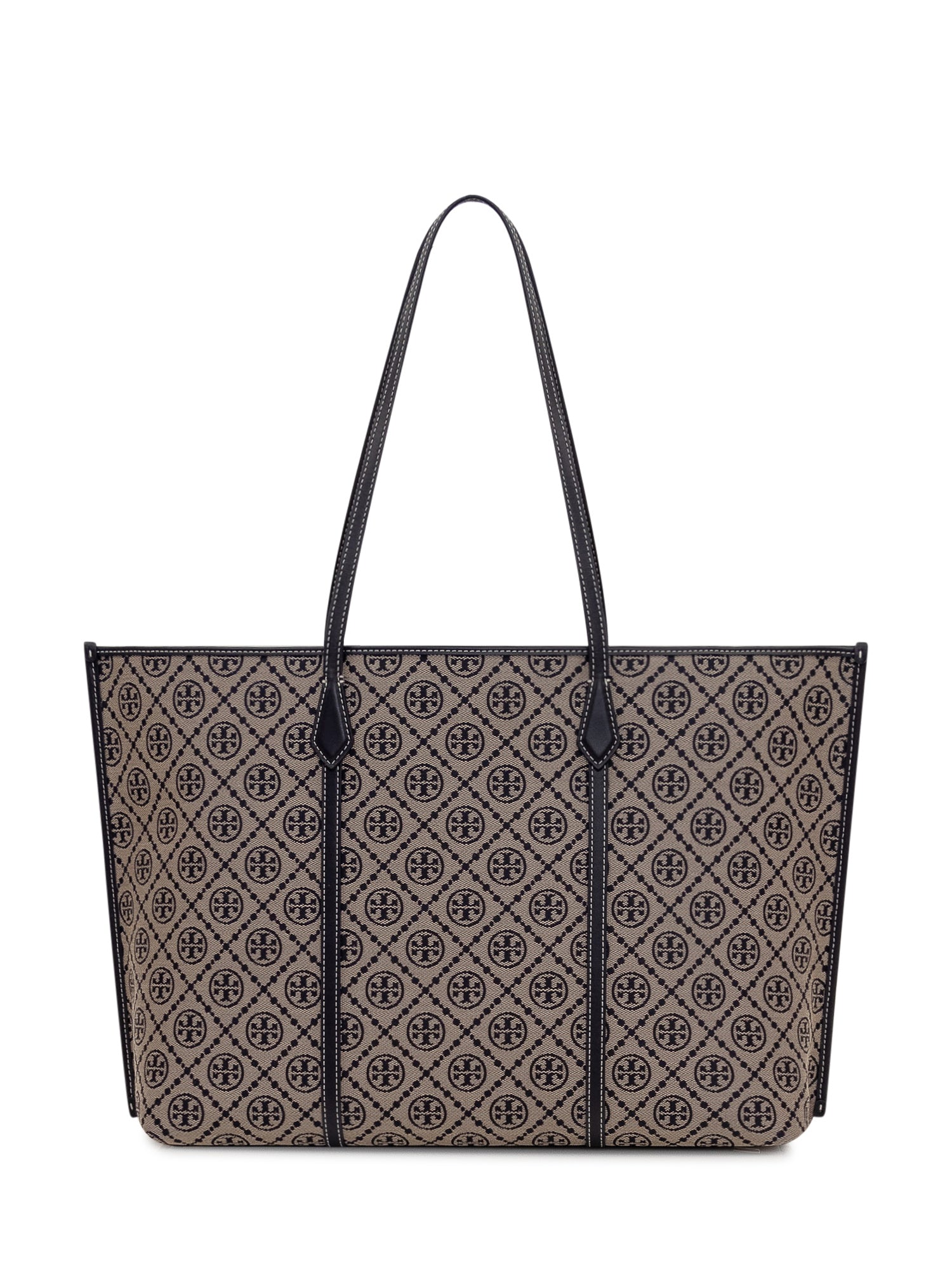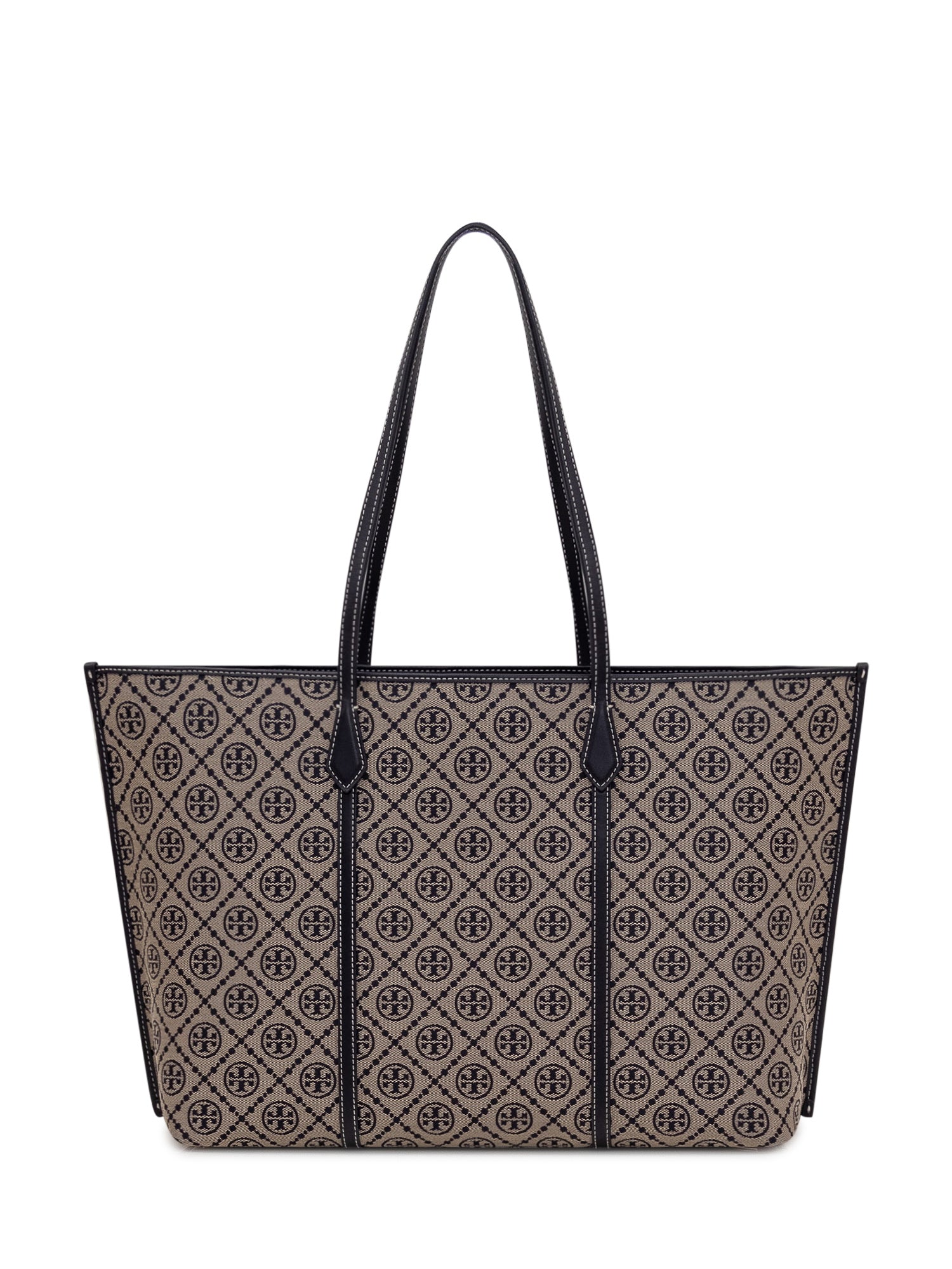 Tote bag with all over monogram pattern and spacious structure. Double long handles and contrasting vertical details on the front. Roomy and streamlined design ideal for everyday use.