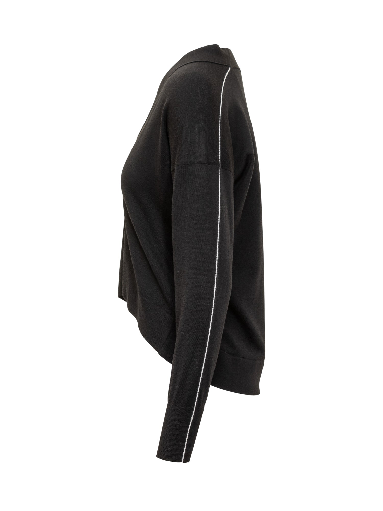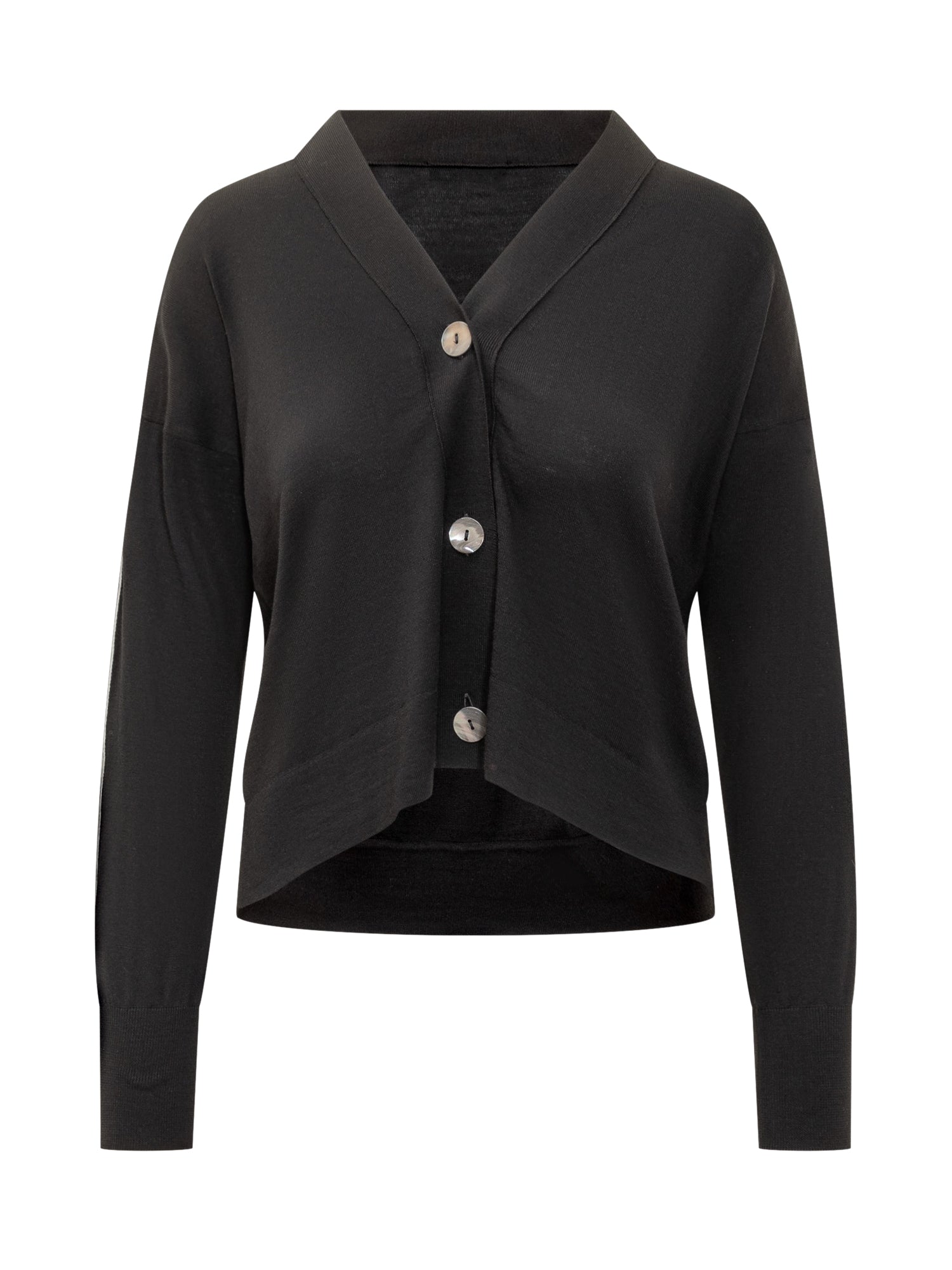 Naga lightweight black knit cardigan with cropped cut and contrast buttons. Minimal and refined design.