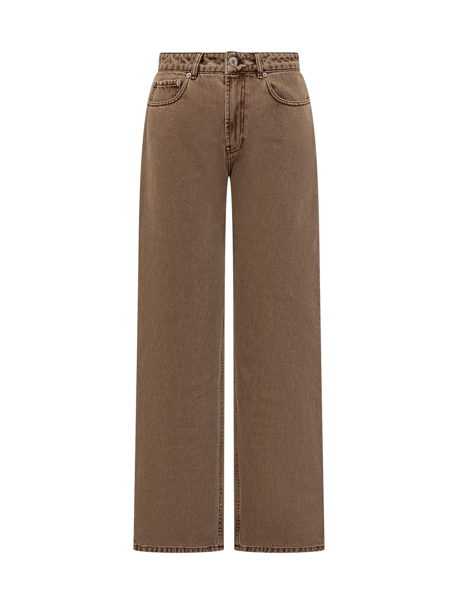 Ami Alexandre Mattiussi brown denim jeans with wide leg cut and regular waist.