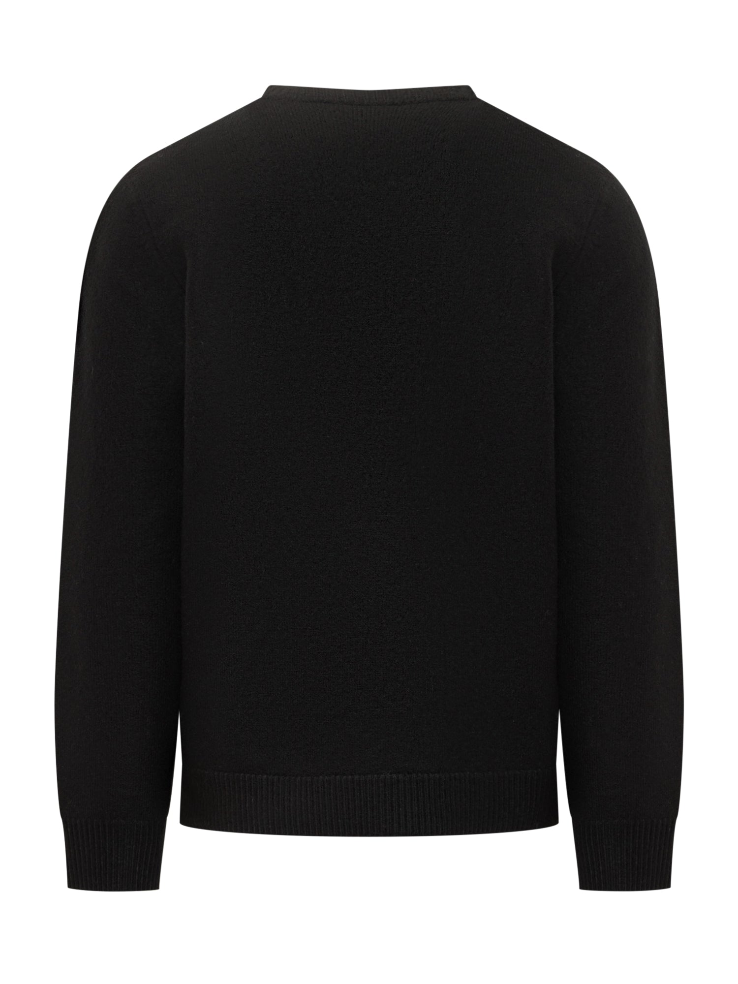 A.P.C. wool sweater in black with crew neck and tonal embroidered logo at the hem.