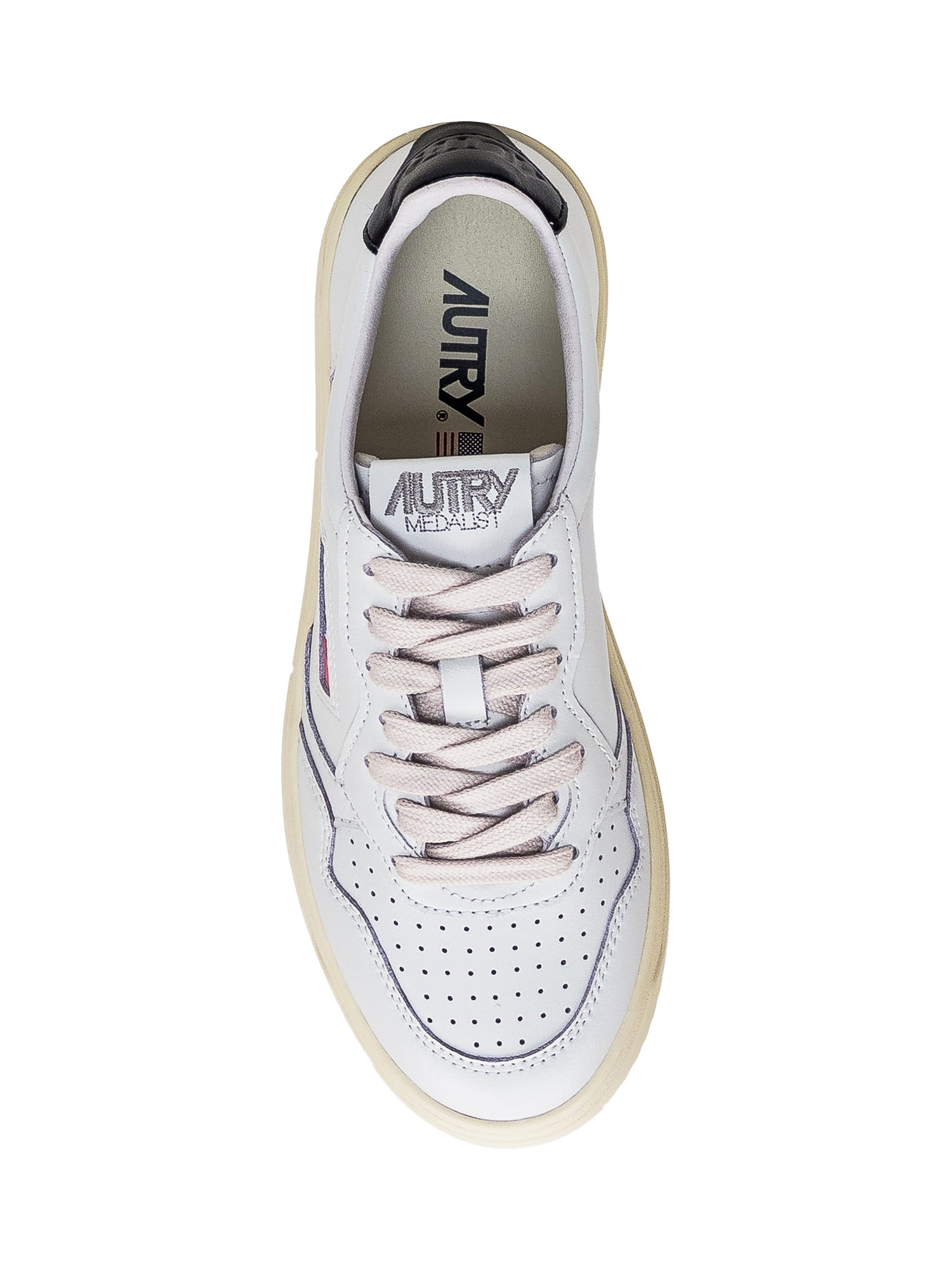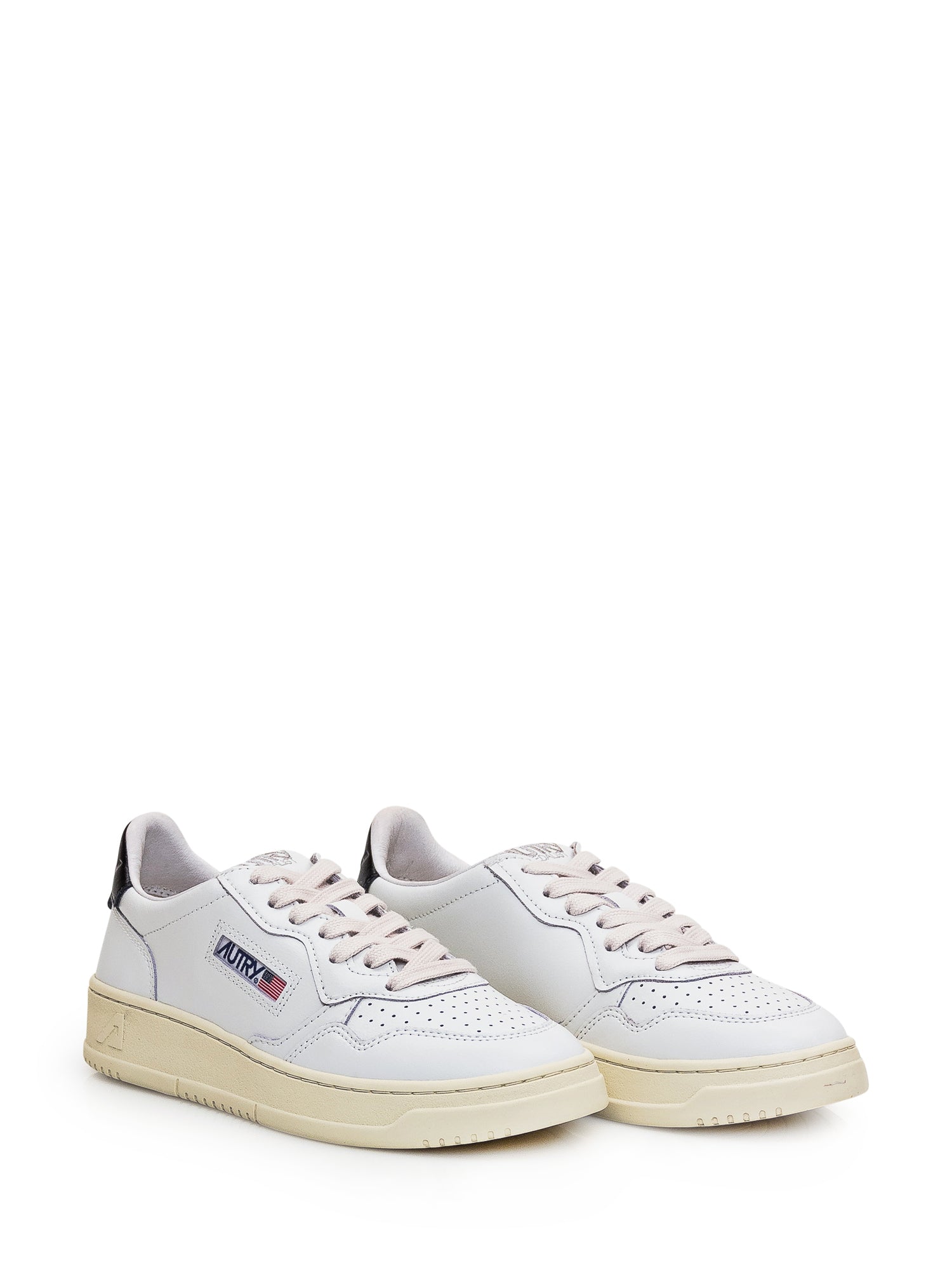 White leather sneaker. Perforated toe. Closure with laces. Contrast heel. Logo on tongue, heel and side.