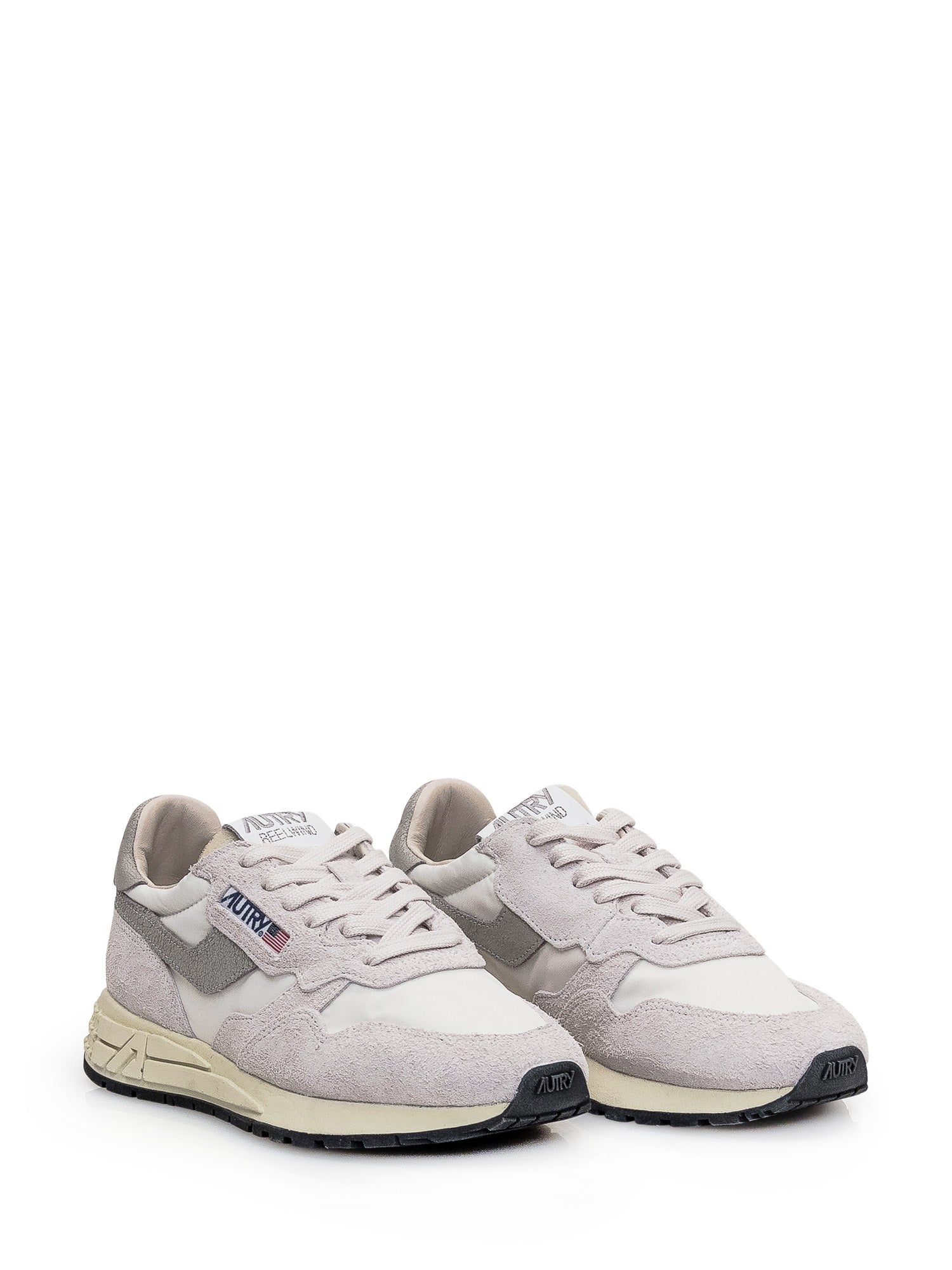 White suede sneaker. Fabric inserts. Closure with laces. Contrast heel with logo. Logo on the tongue and side.