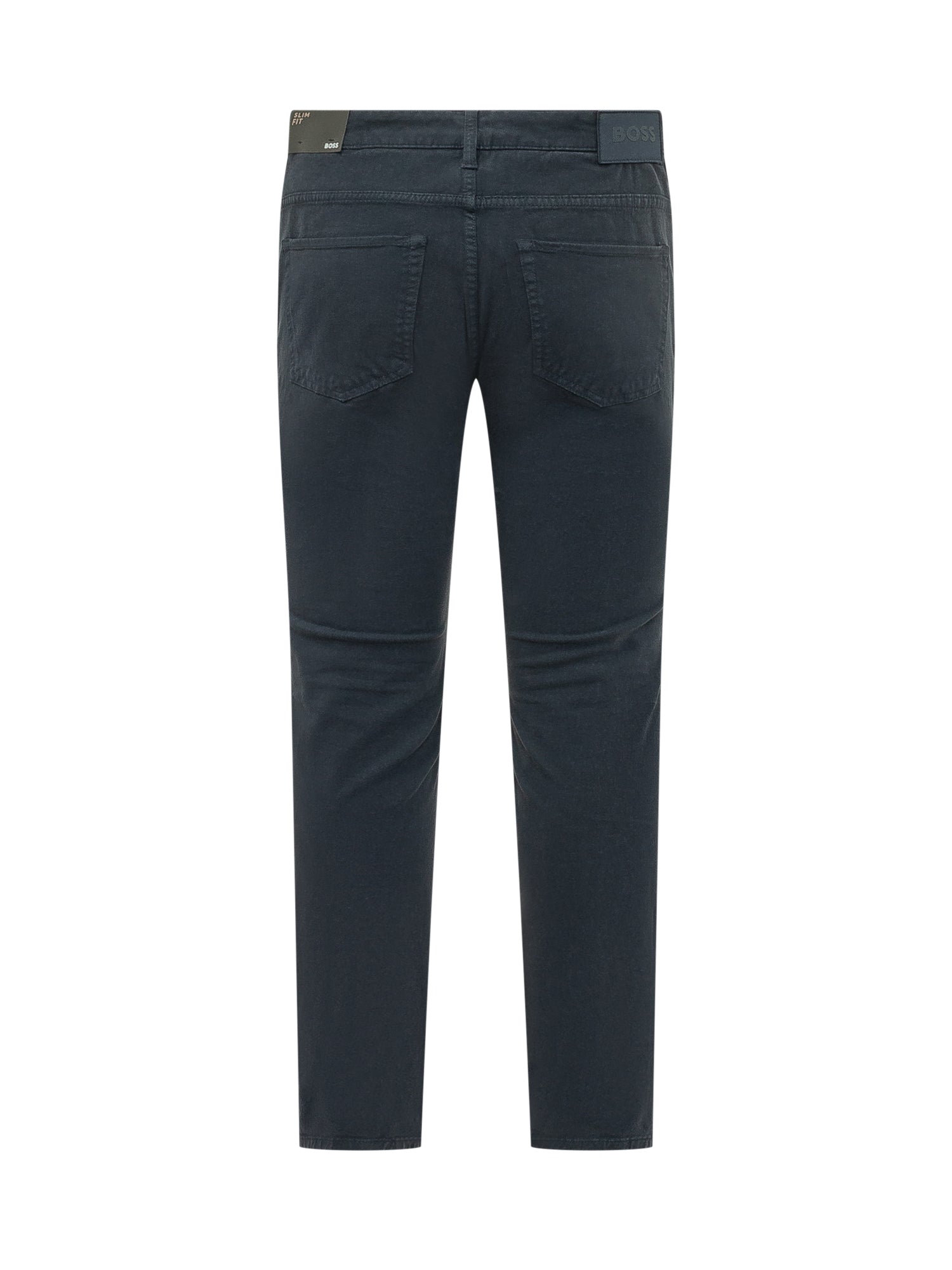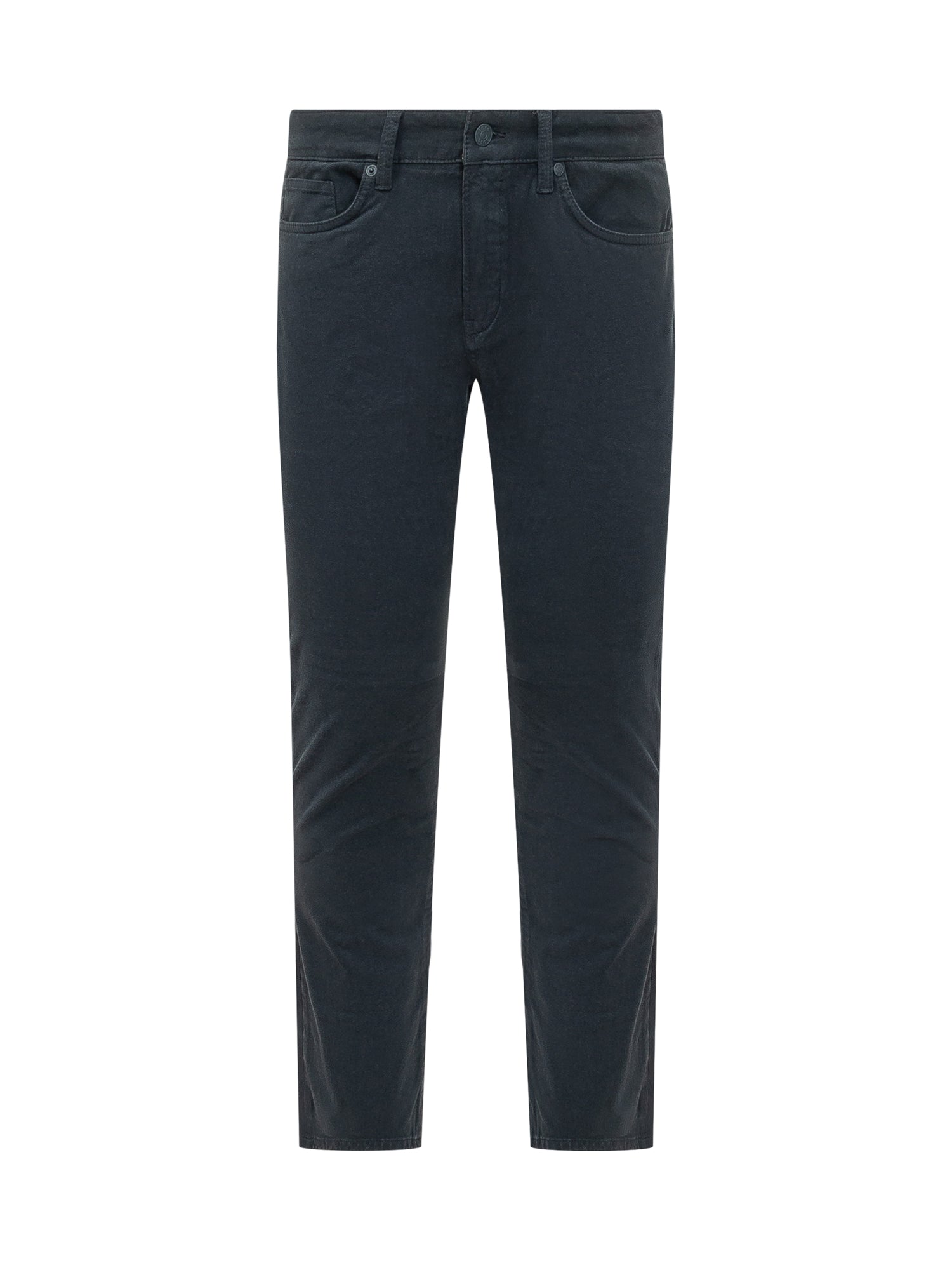 Five-pocket stretch cotton trousers with washed finish. Slim fit and button-and-zip closure.