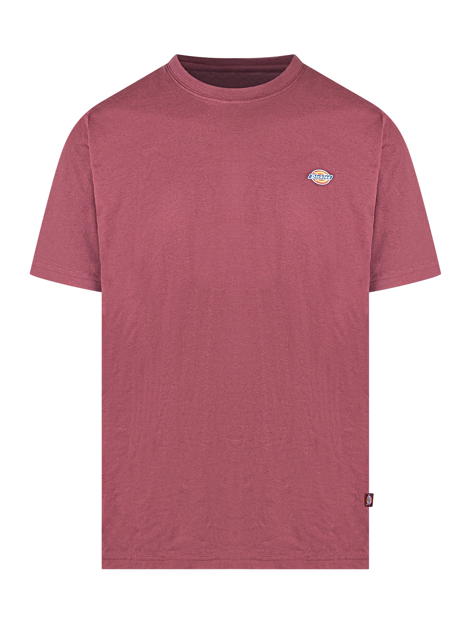 Dickies burgundy cotton T-shirt featuring an embroidered chest logo. Regular fit and minimal design.