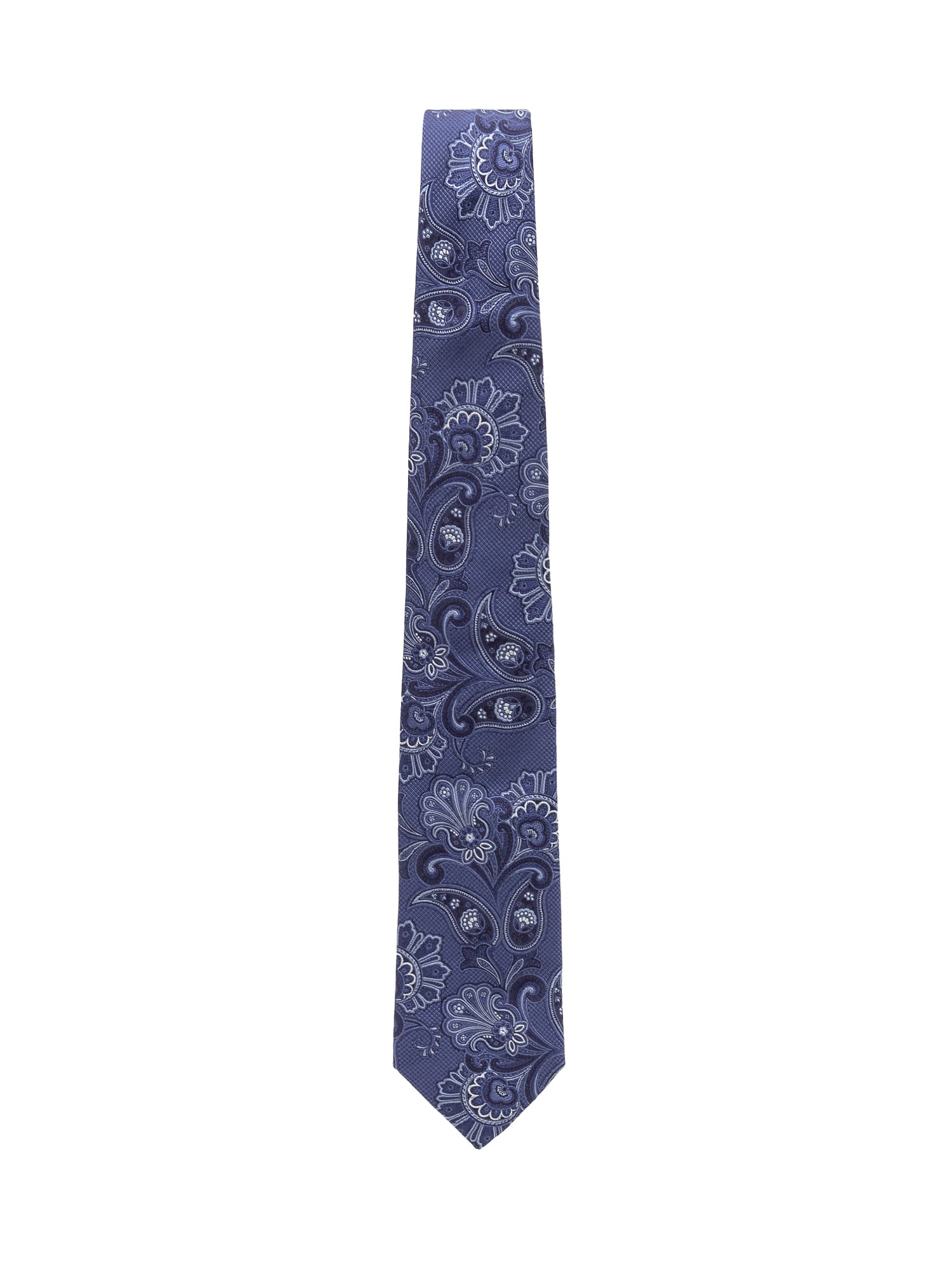 Long pure silk tie featuring a refined paisley pattern. Elegant texture and detailed design ideal for formal outfits and special occasions.