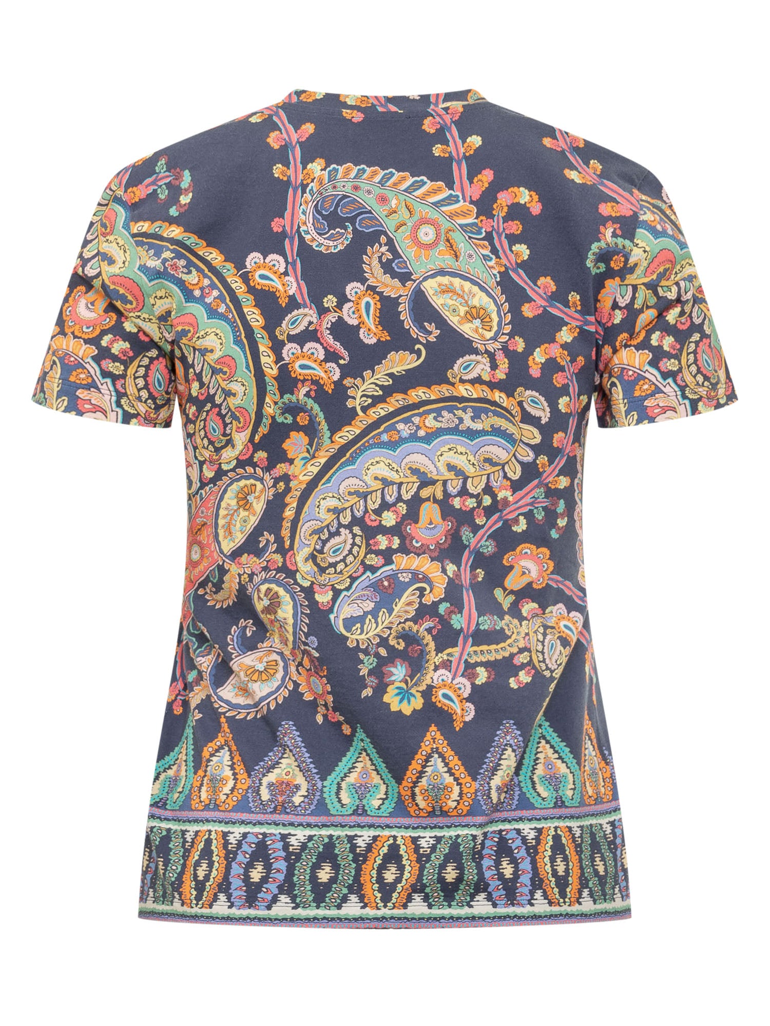 Slim fit crew-neck T-shirt with short sleeves, featuring an all-over paisley print with a refined aesthetic. The fitted cut enhances the silhouette.