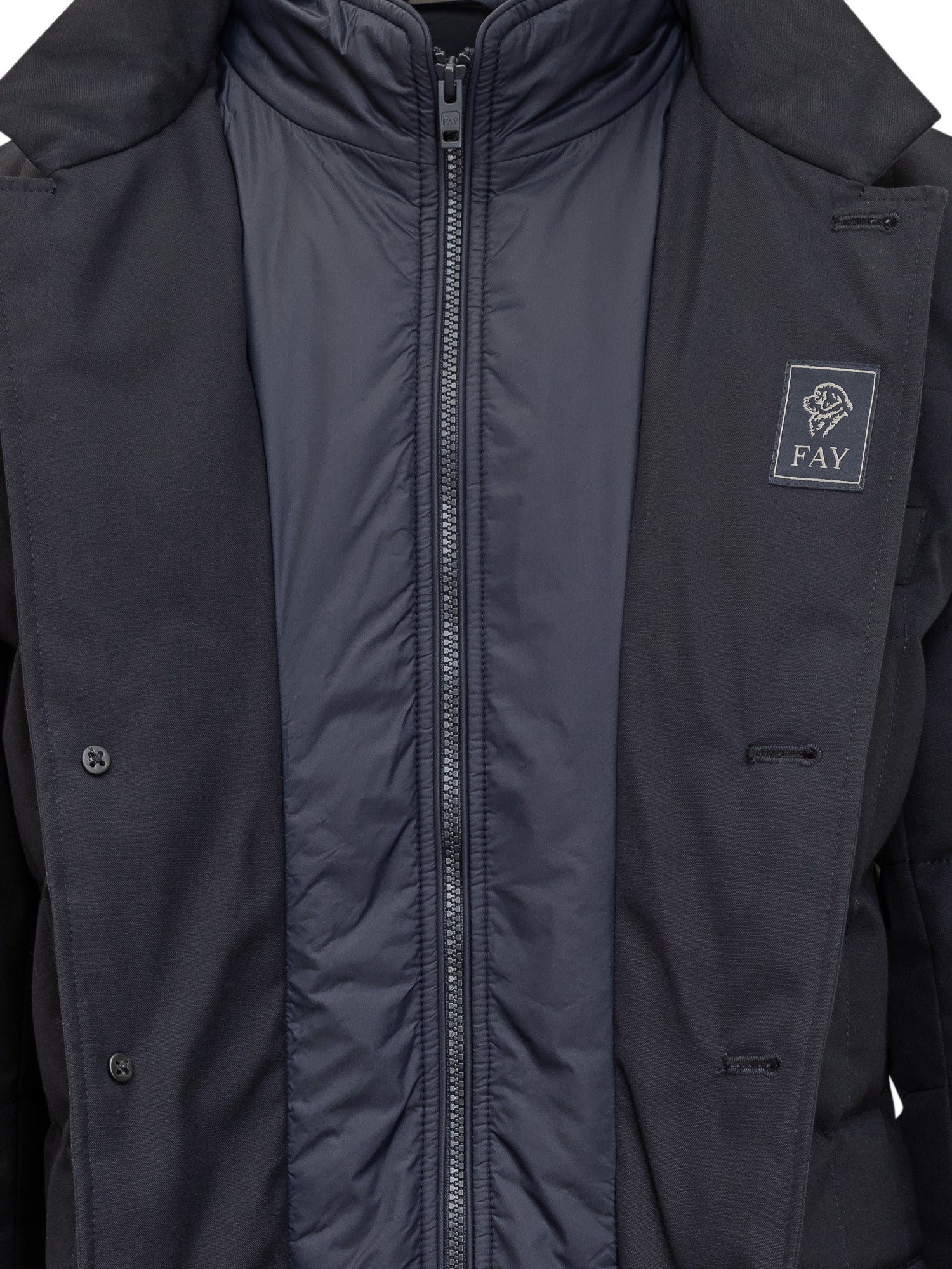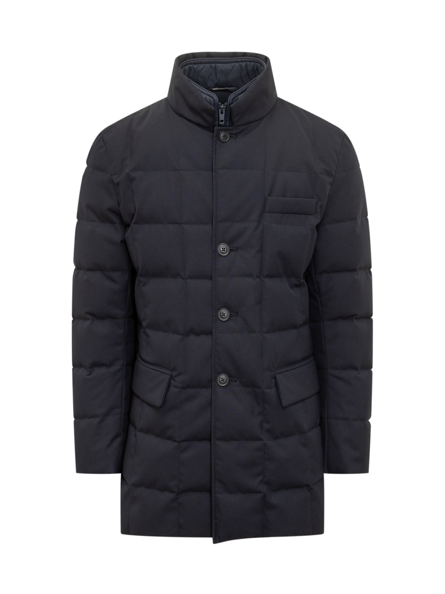 Fay blue quilted down jacket featuring button closure and inner zip.