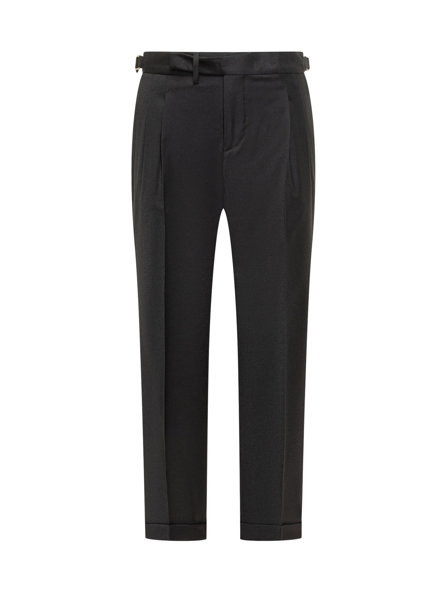 Briglia straight-cut trousers with a genderless design. Featuring front pleats, adjustable waistband and cuffed hems.
