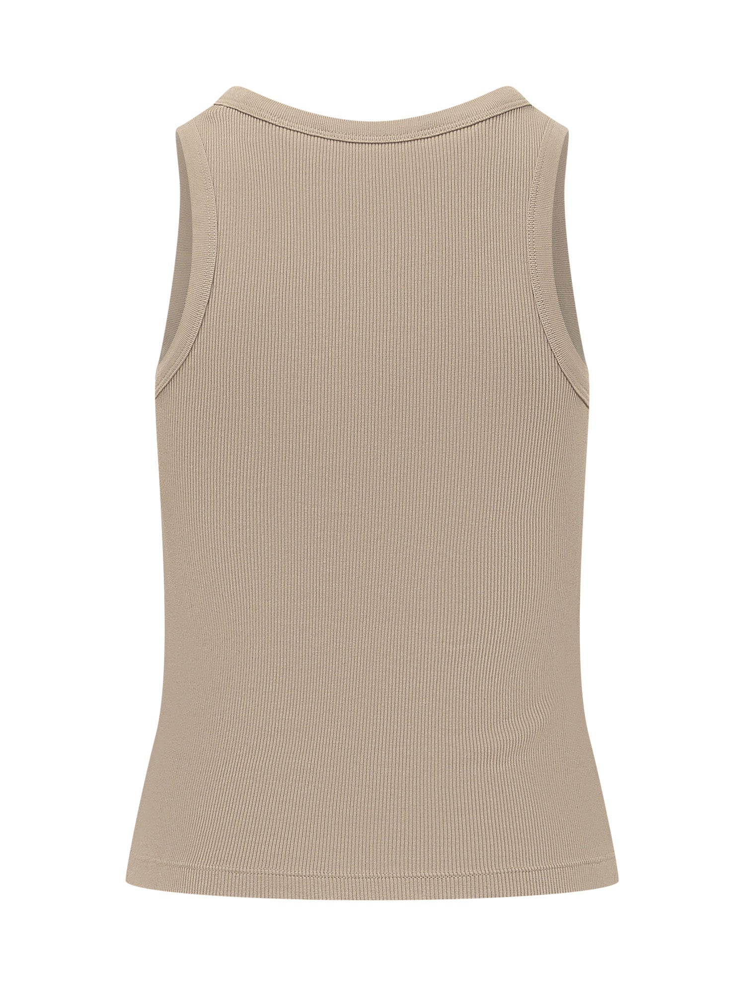 Canotta senza maniche in maglia a coste con scollo rotondo. Design pulito con vestibilità aderente che esalta la silhouette. Perfetta da indossare da sola o come capo essenziale da indossare a strati.