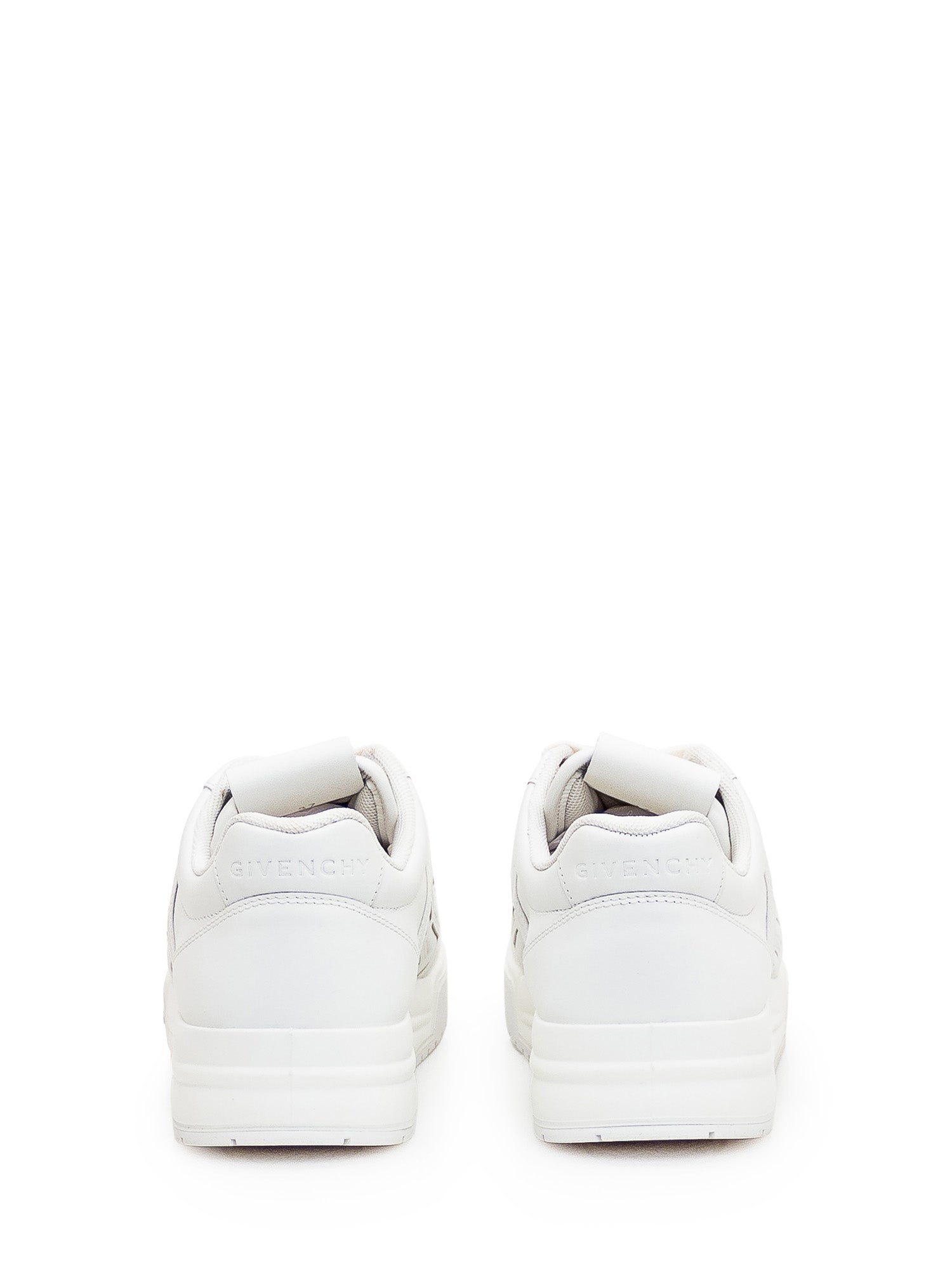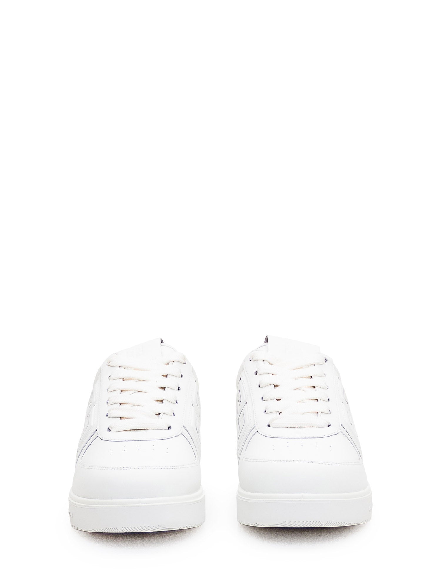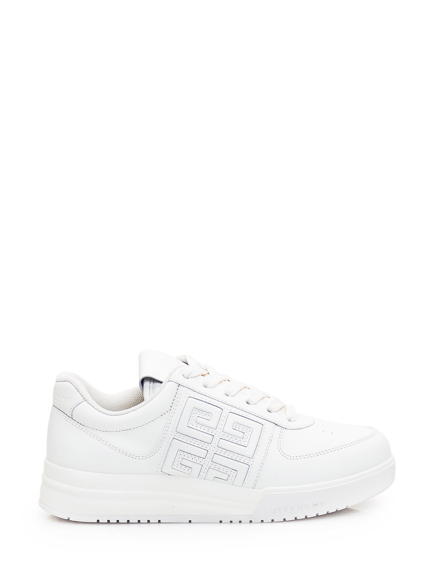 White leather low-top sneaker. Perforated toe. Lace-up closure. Leather logo patch on tongue. 4G logo on side. Logo on heel. 4G logo on the side.
