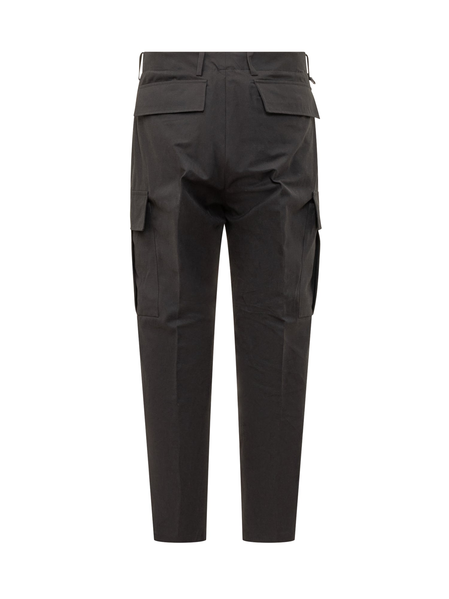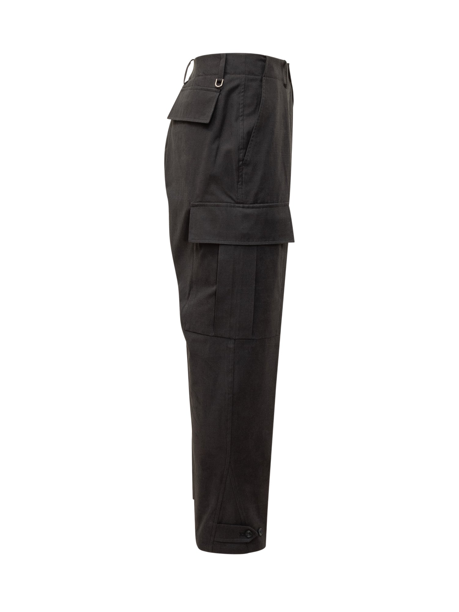 Hosio black technical fabric cargo pants with side pockets, front closure and adjustable ankle straps.