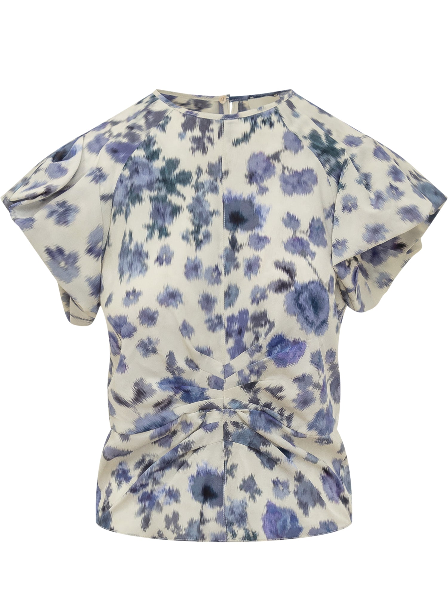 Tullya top featuring soft sleeves and a central draped detail that shapes the silhouette. The blurred floral print delivers a romantic feel.