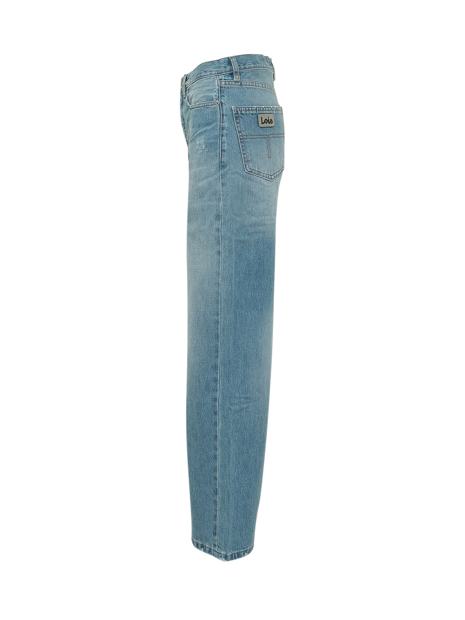 Loose-fit jeans with a regular waist and wide straight leg. Five-pocket design with belt loops. Front zip and button closure. Denim with a worn-in look, perfect for casual and modern styling.