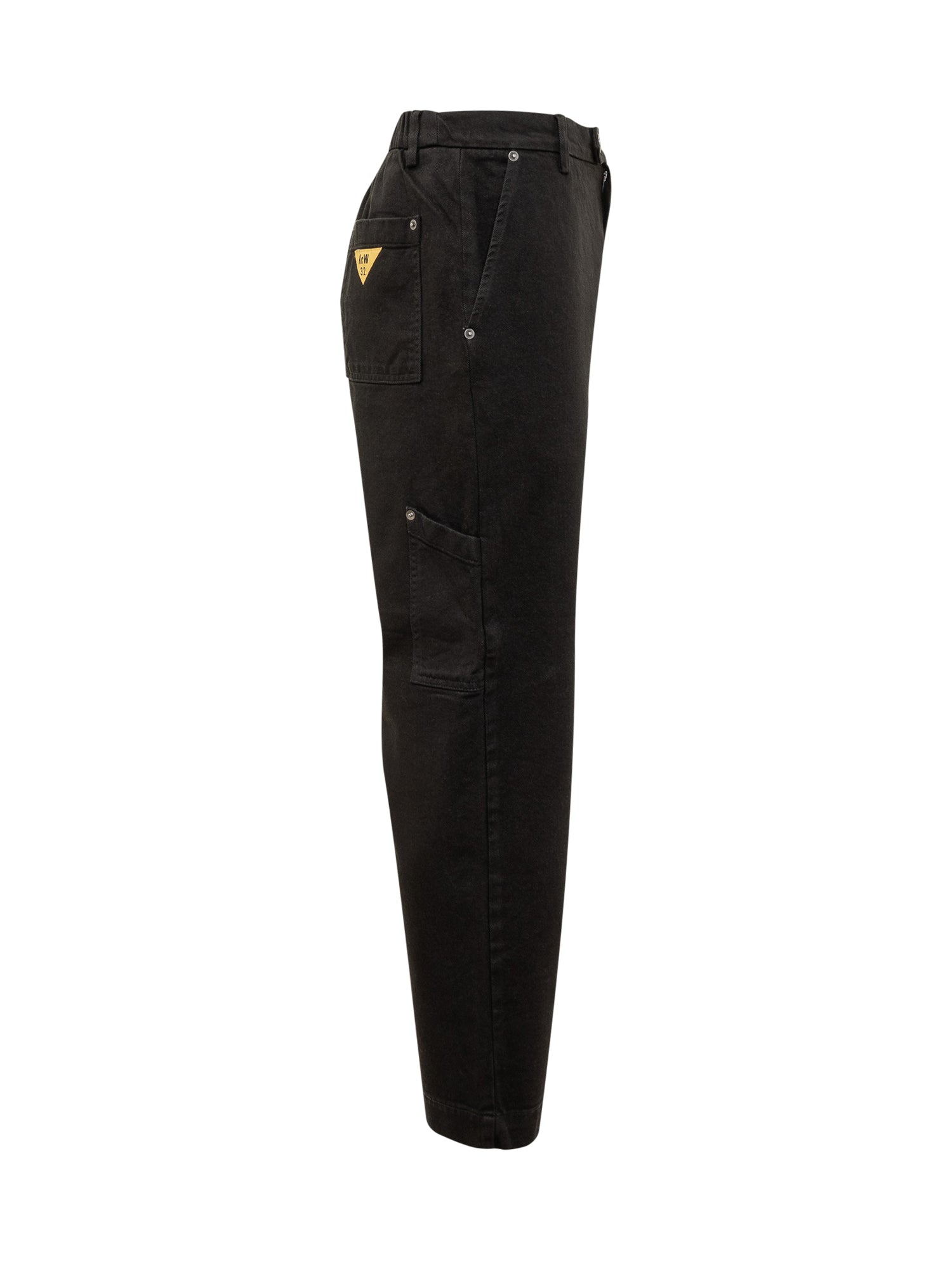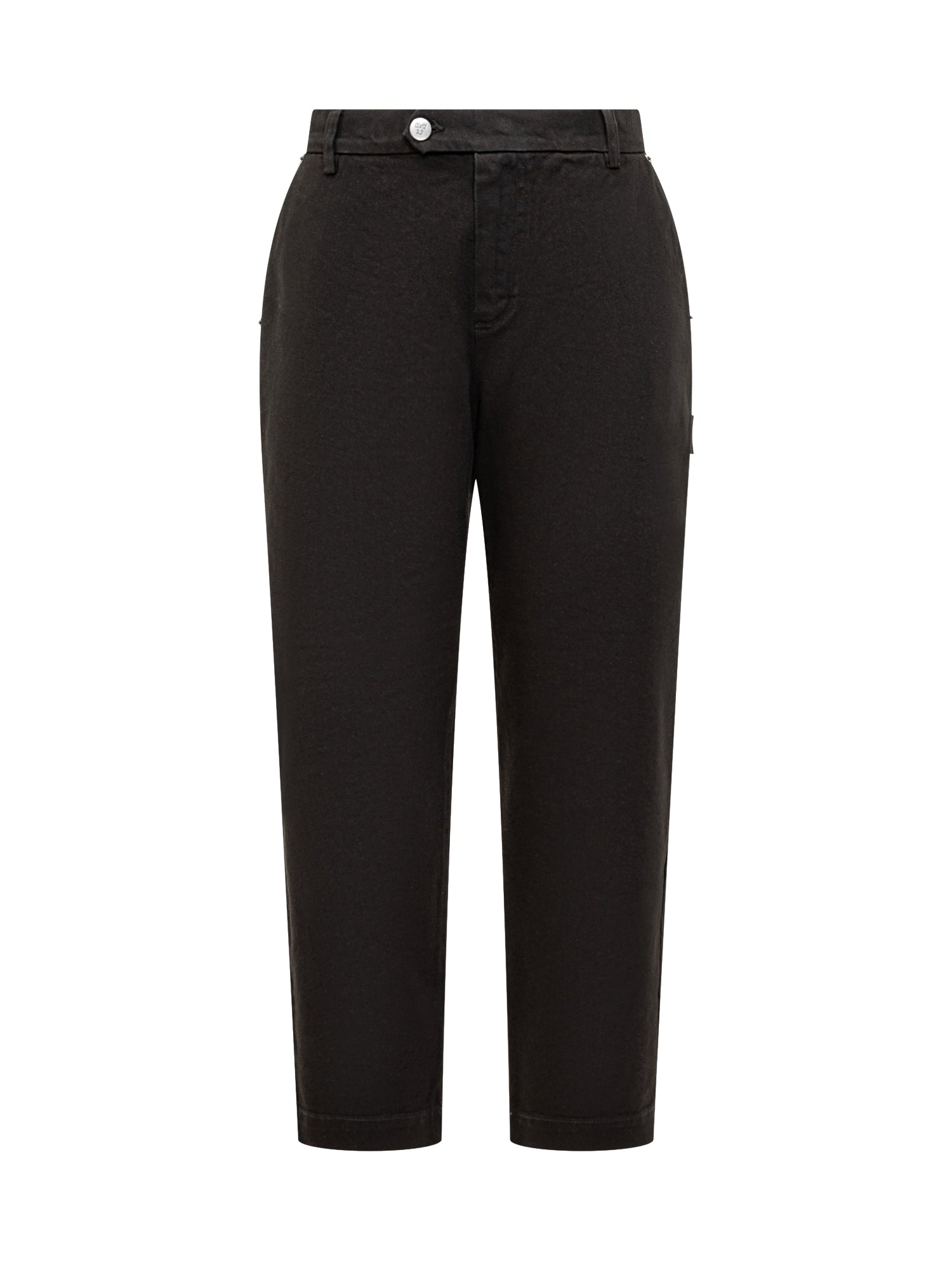 Maison Crazy Worker black stretch cotton pants. Straight-leg design, side pockets.