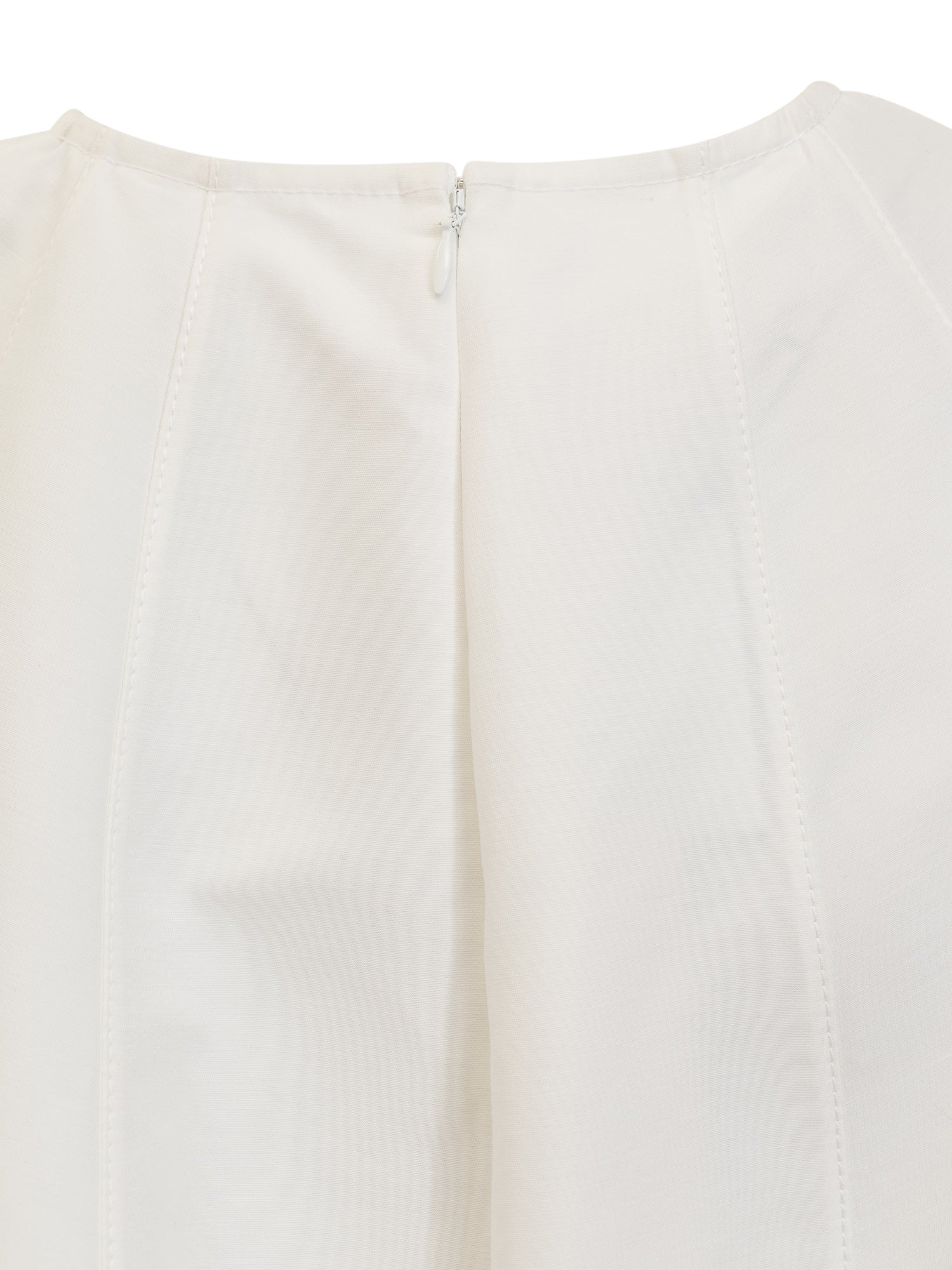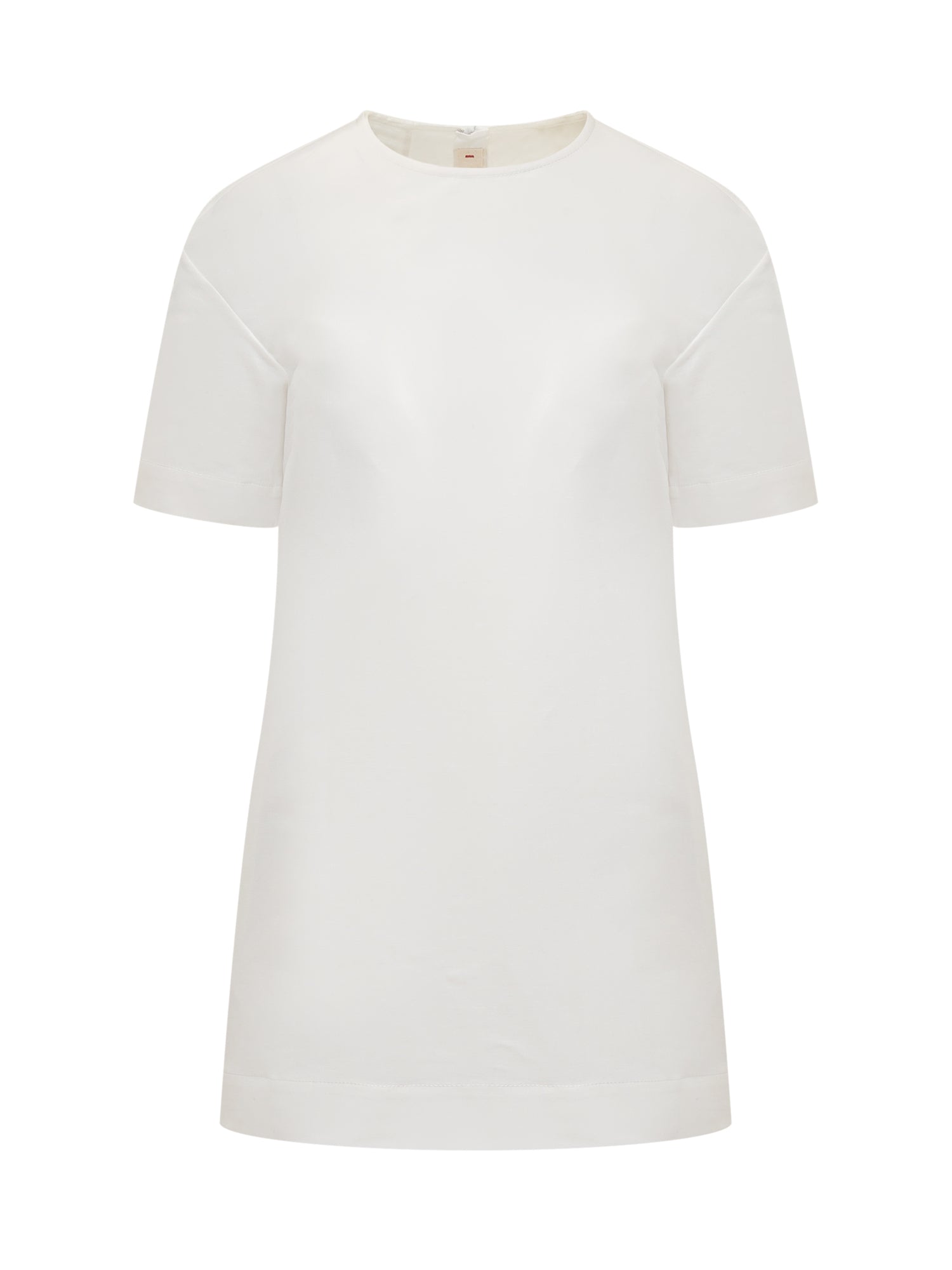 Mini cotton dress. Round neck. Zip back closure. Asymmetrical hem.