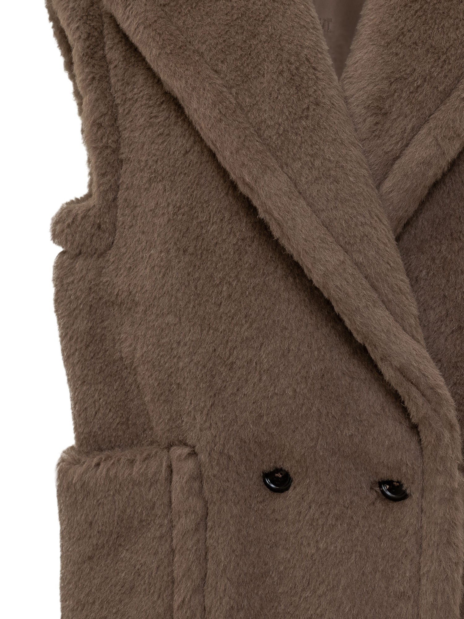 Max Mara camel fur vest with double-breasted closure. Featuring classic lapels and patch pockets.