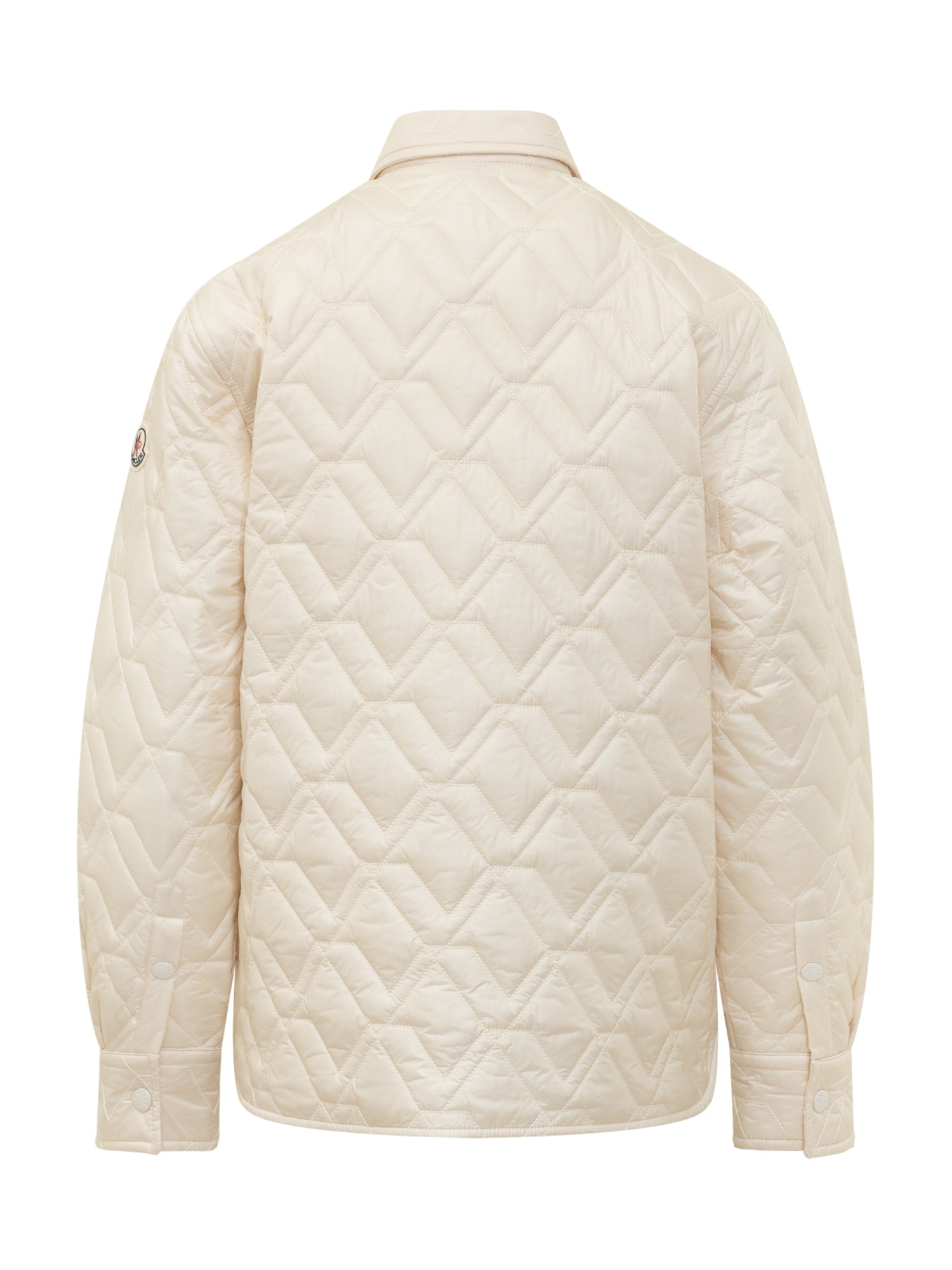 Quilted jacket with a clean, minimal design, featuring front button closure and a chest patch pocket. Comfortable fit and versatile style.