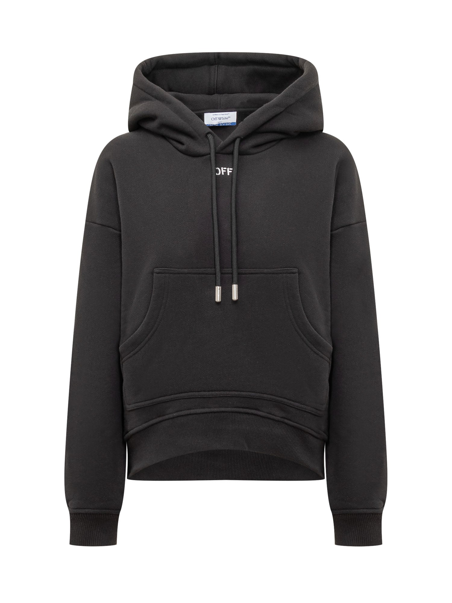 Long-sleeved sweatshirt. Drawstring hood. Ribbed hems. Single pocket on front. OFF logo embroidered on the front.