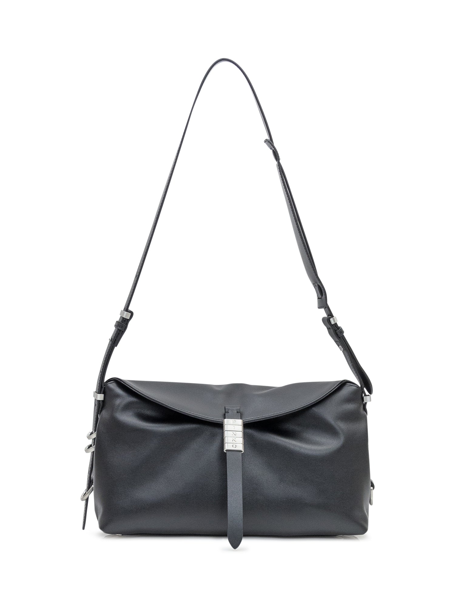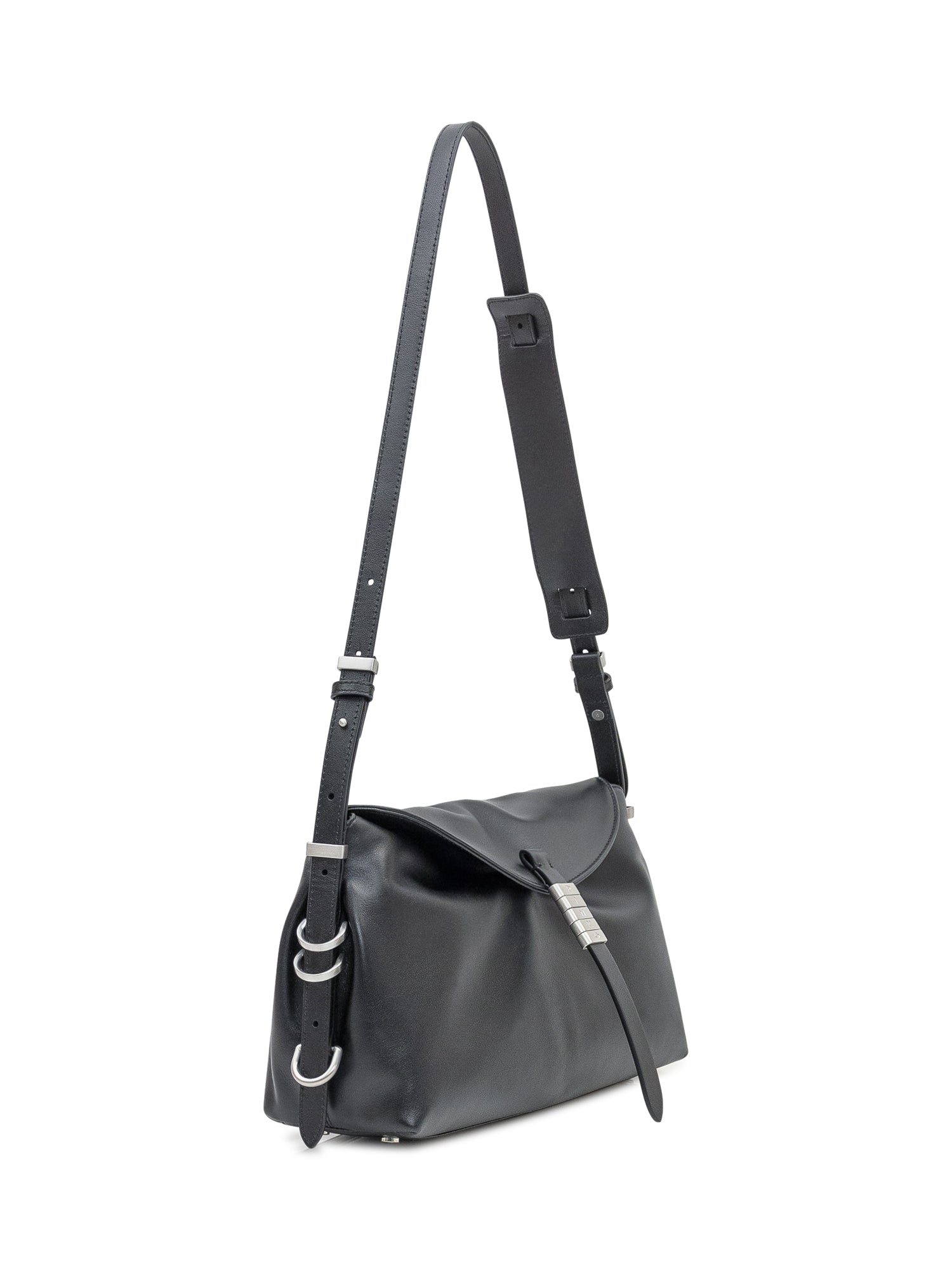 Pinko New Saddle bag in black leather with adjustable shoulder strap and logo buckle closure.