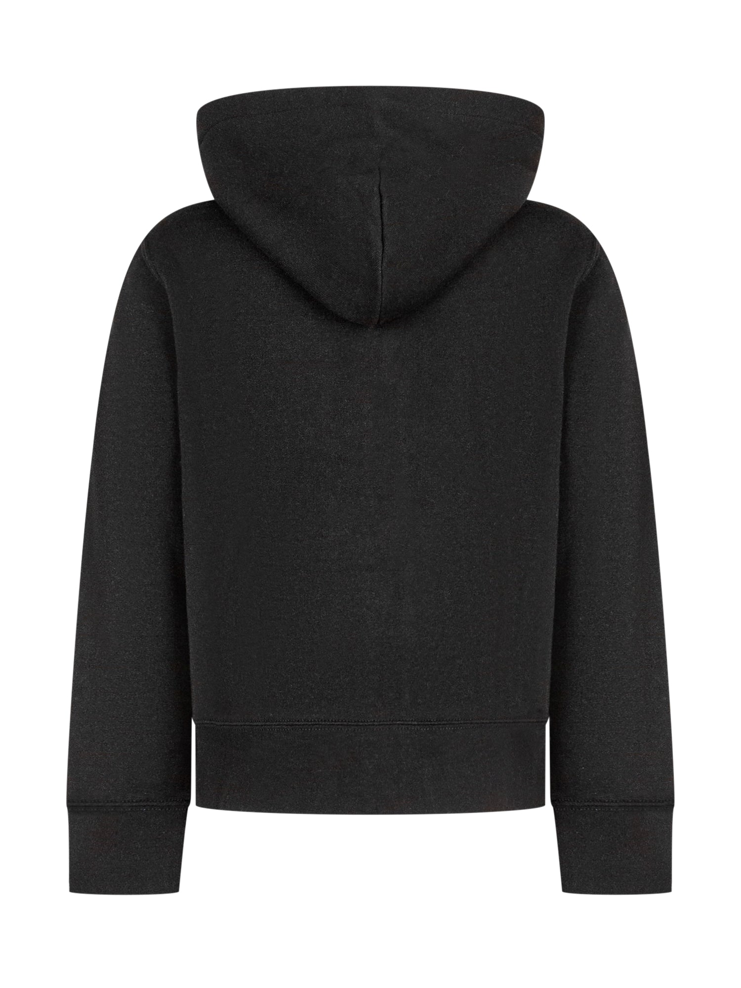 Black cotton hoodie with full zip, hood, and kangaroo pockets. Features the iconic pink Pony logo embroidered.