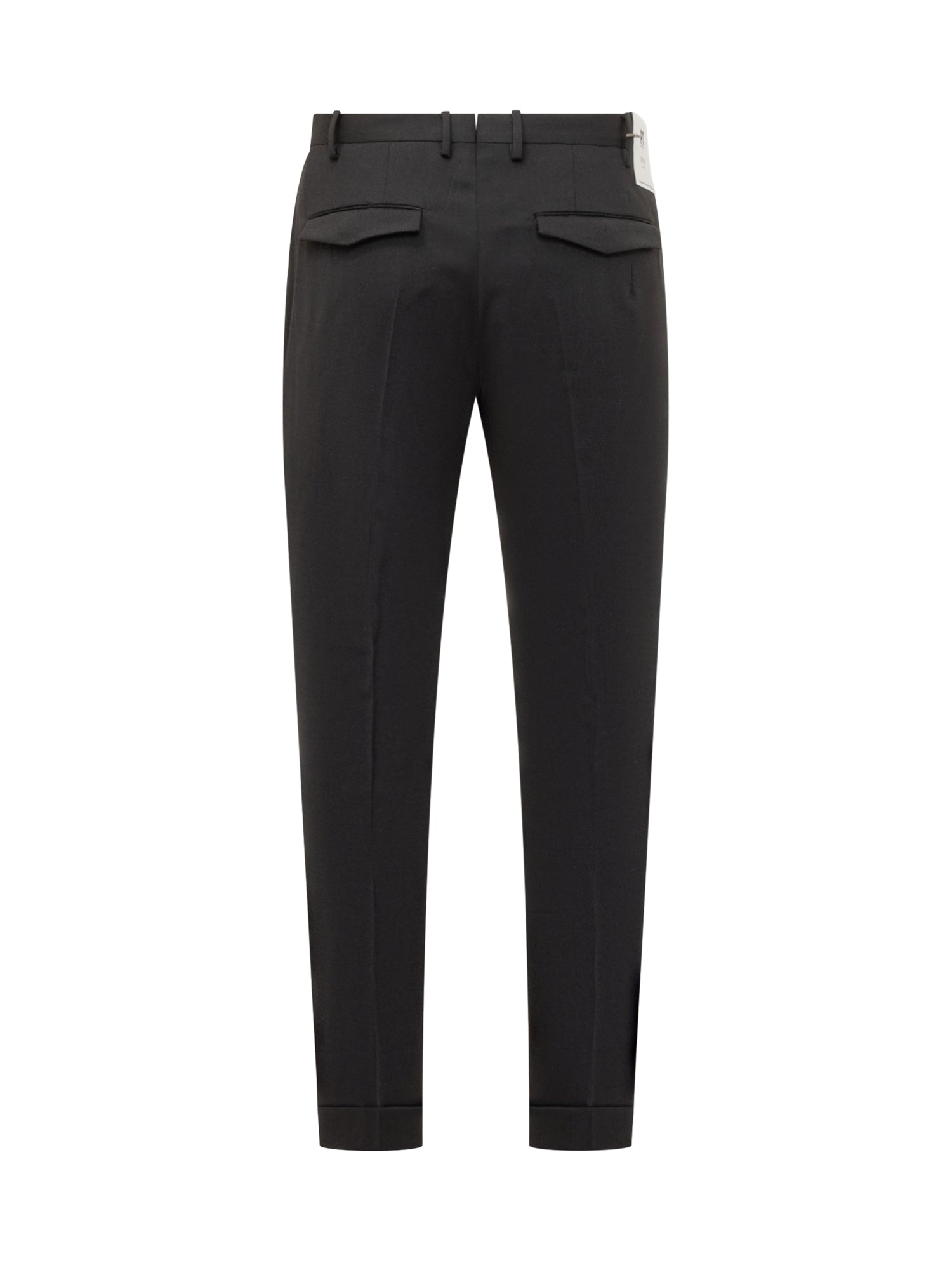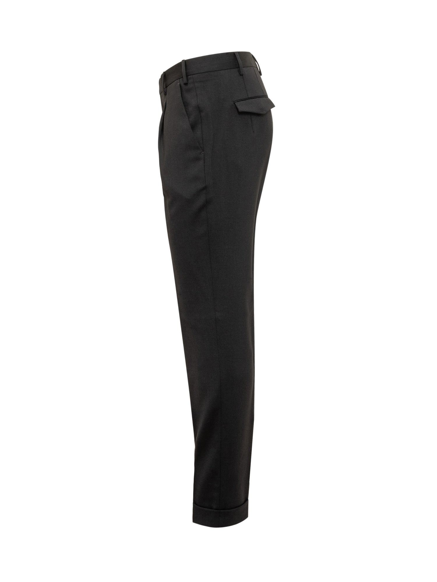 PT Torino black wool pants with front pleats and cuffed hems. Button and zip closure.