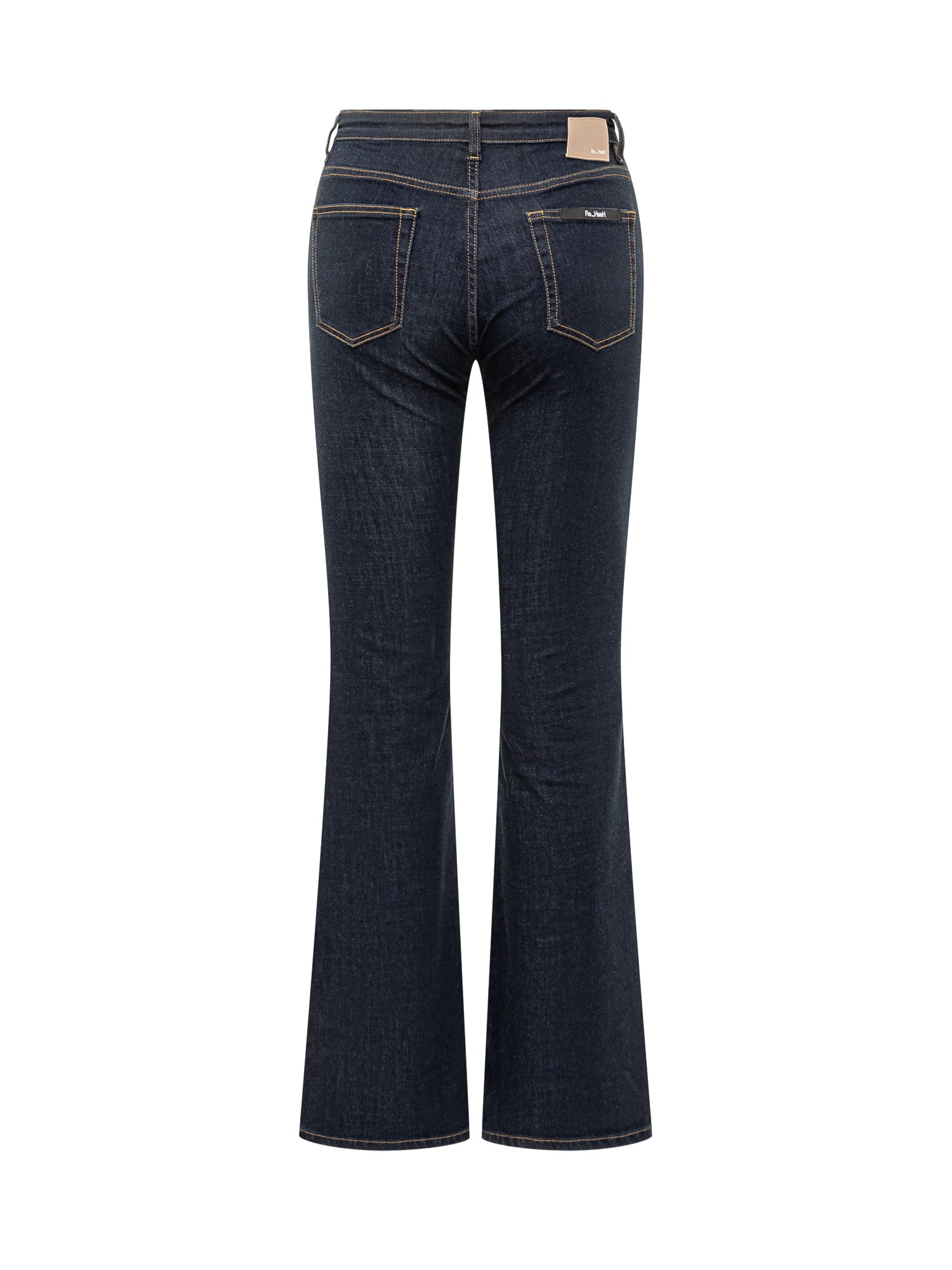 Bootcut jeans in dark denim with mid-rise waist and contrast stitching.