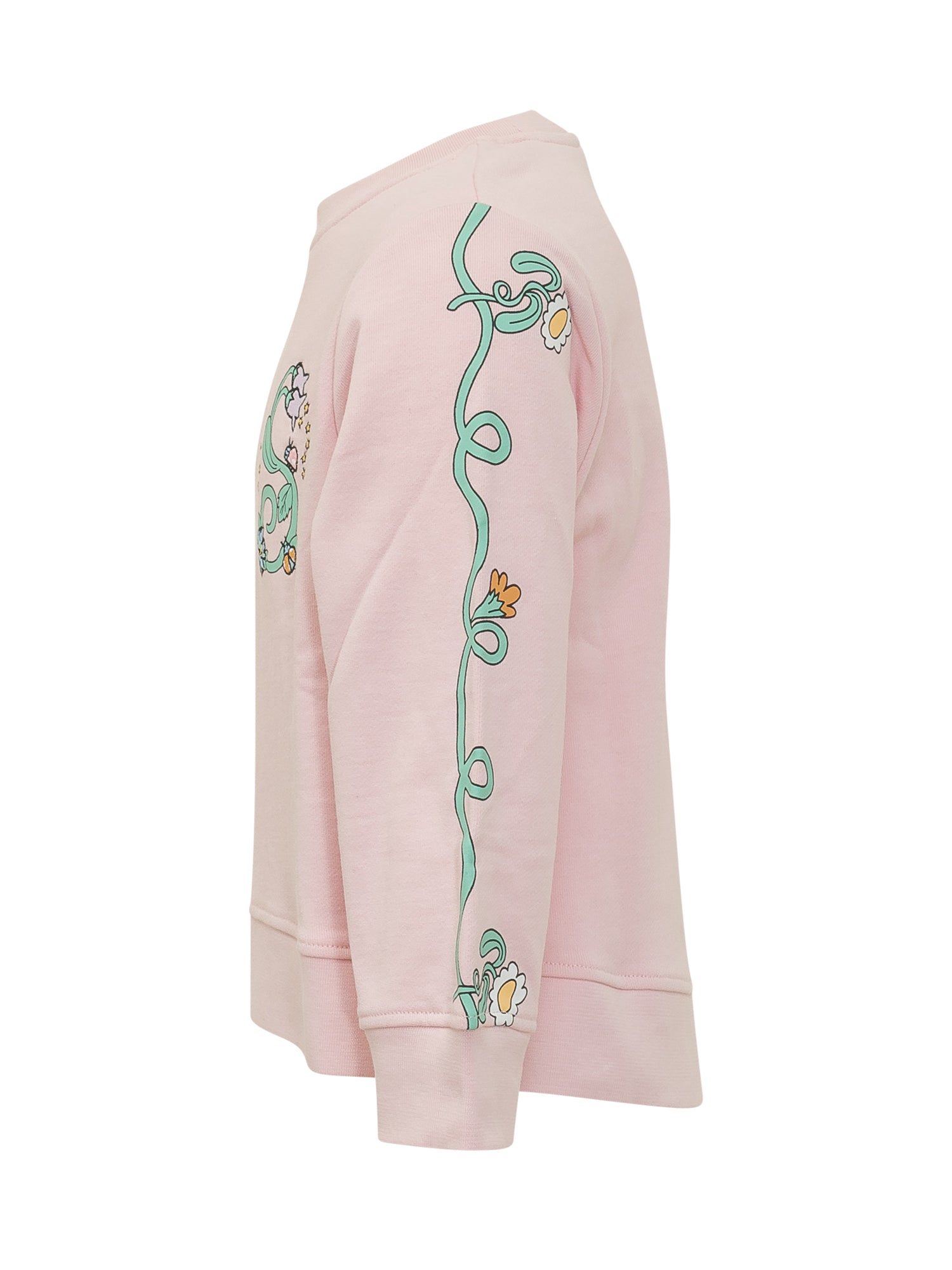 Cotton sweatshirt featuring a decorative floral print on the chest and sleeves.