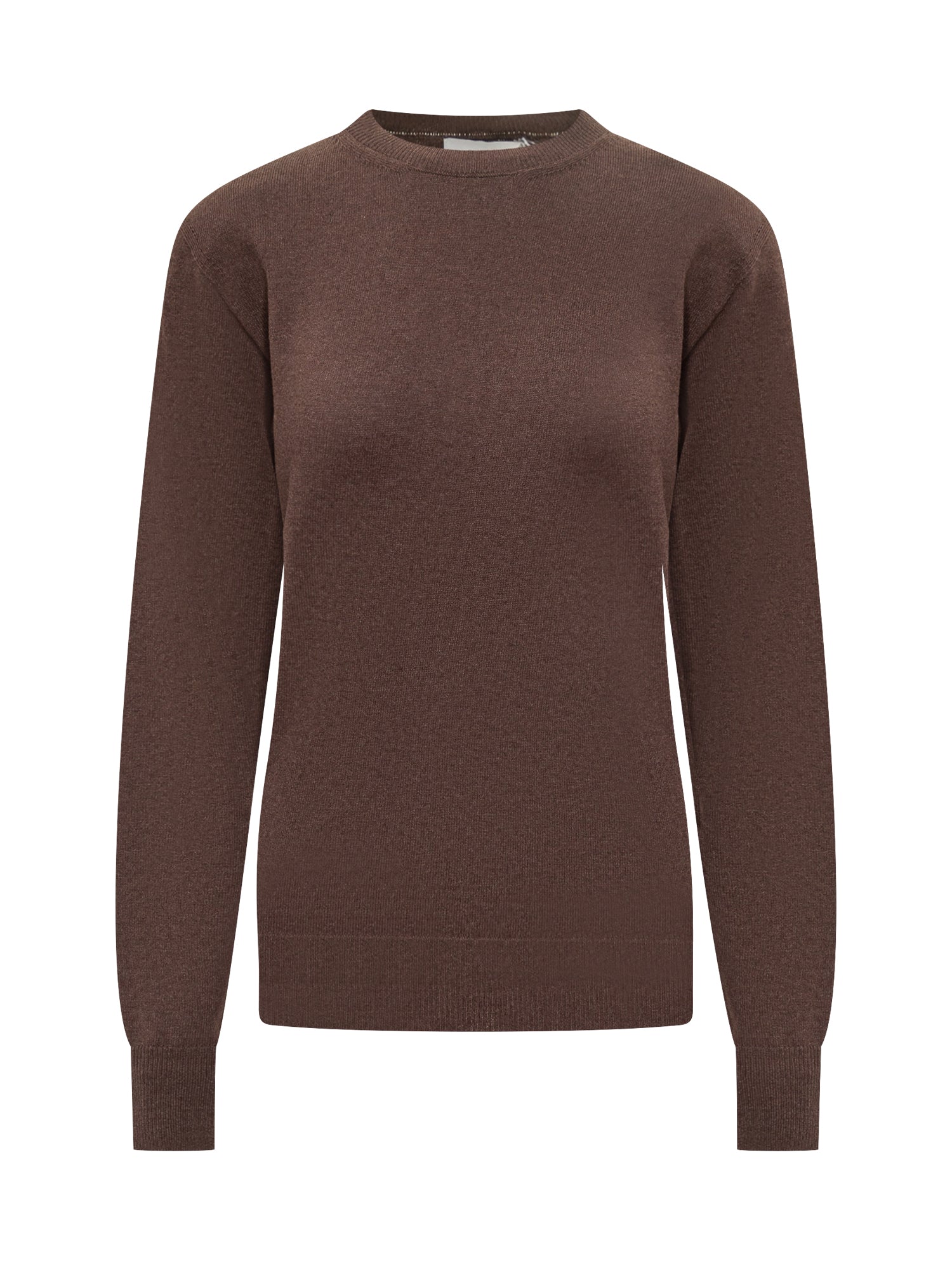 Stella McCartney brown wool sweater with crewneck and minimal lines.