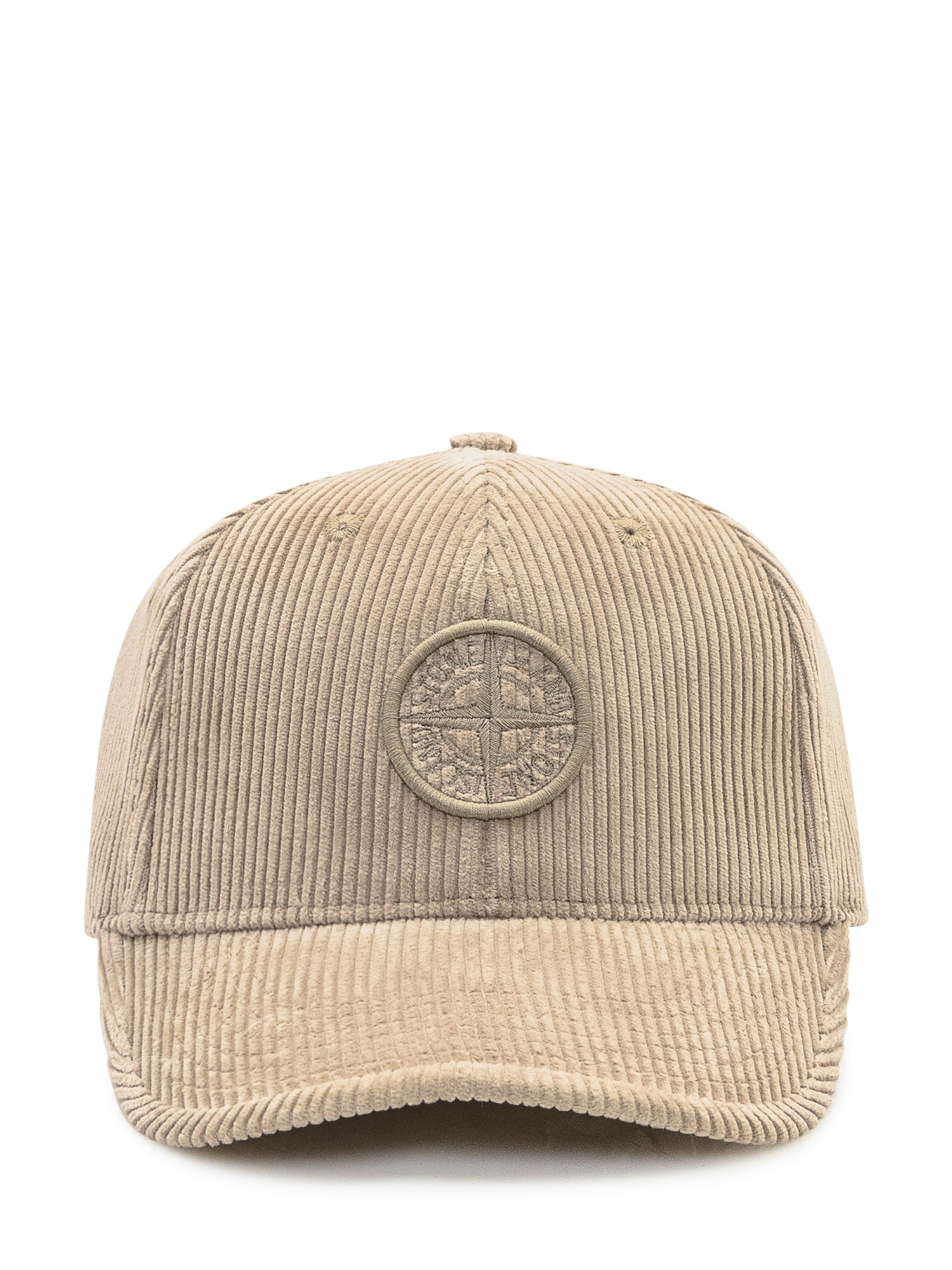 Stone Island cap in beige corduroy with curved visor and tone-on-tone logo patch.