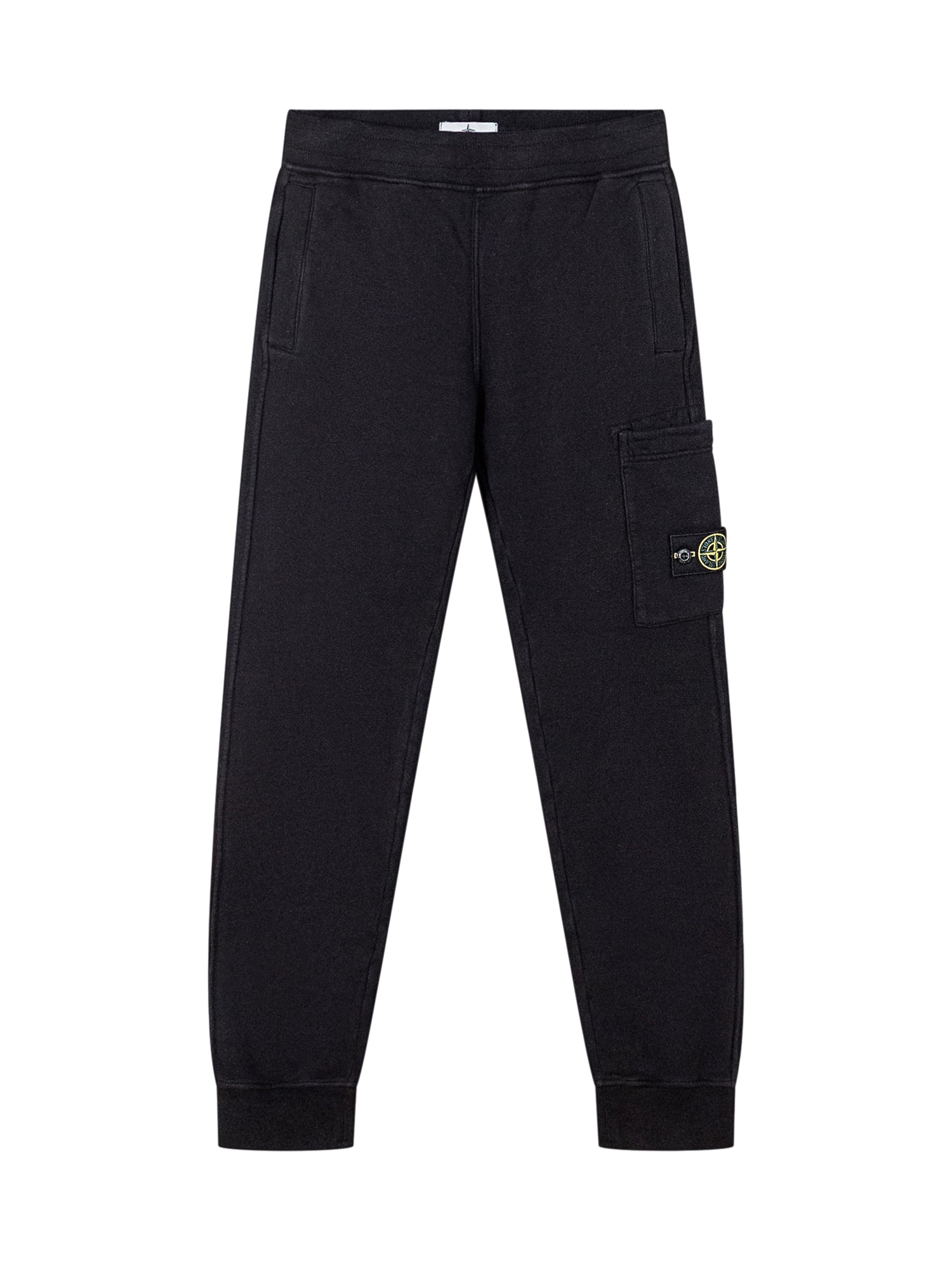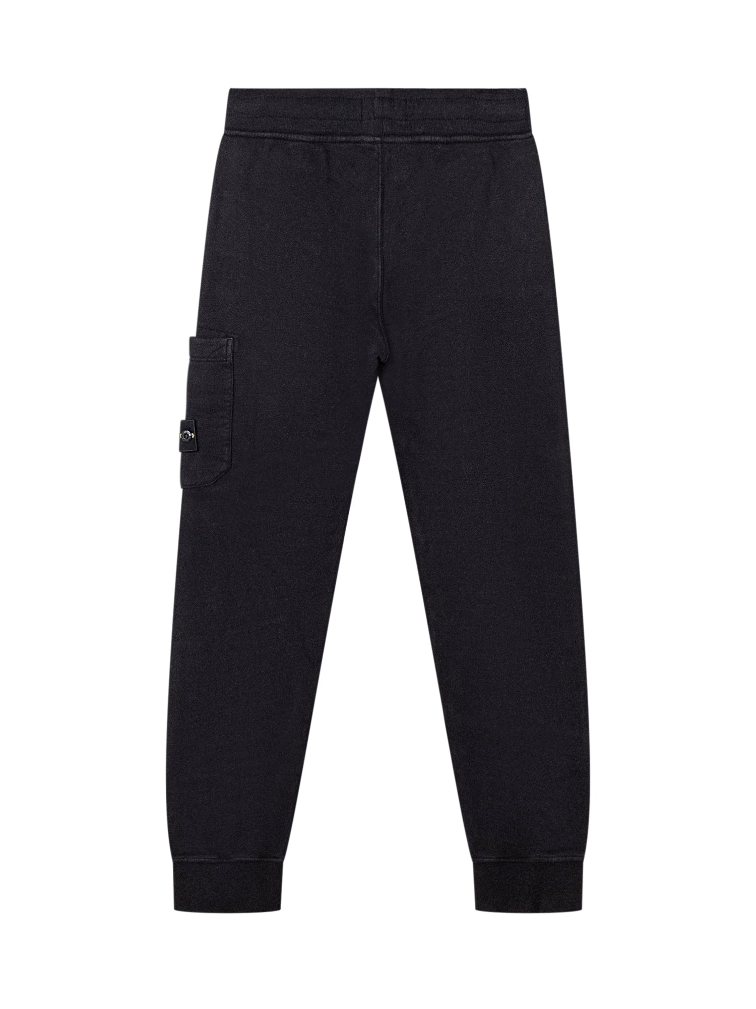 Stone Island Kids black cotton cargo pants featuring side pockets and signature logo patch.