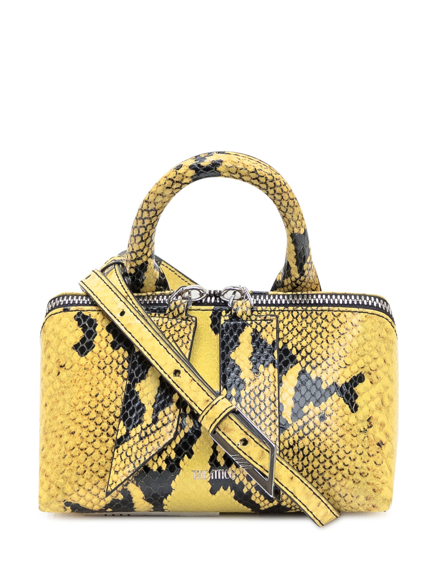 Compact top-handle bag with a single arched handle and zip closure.