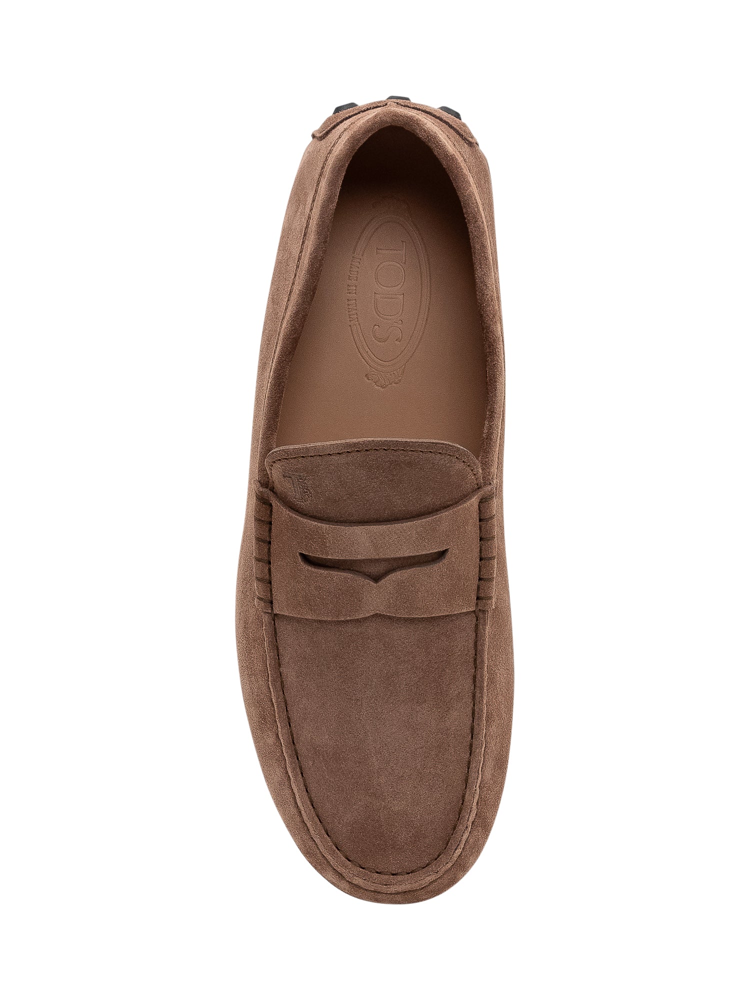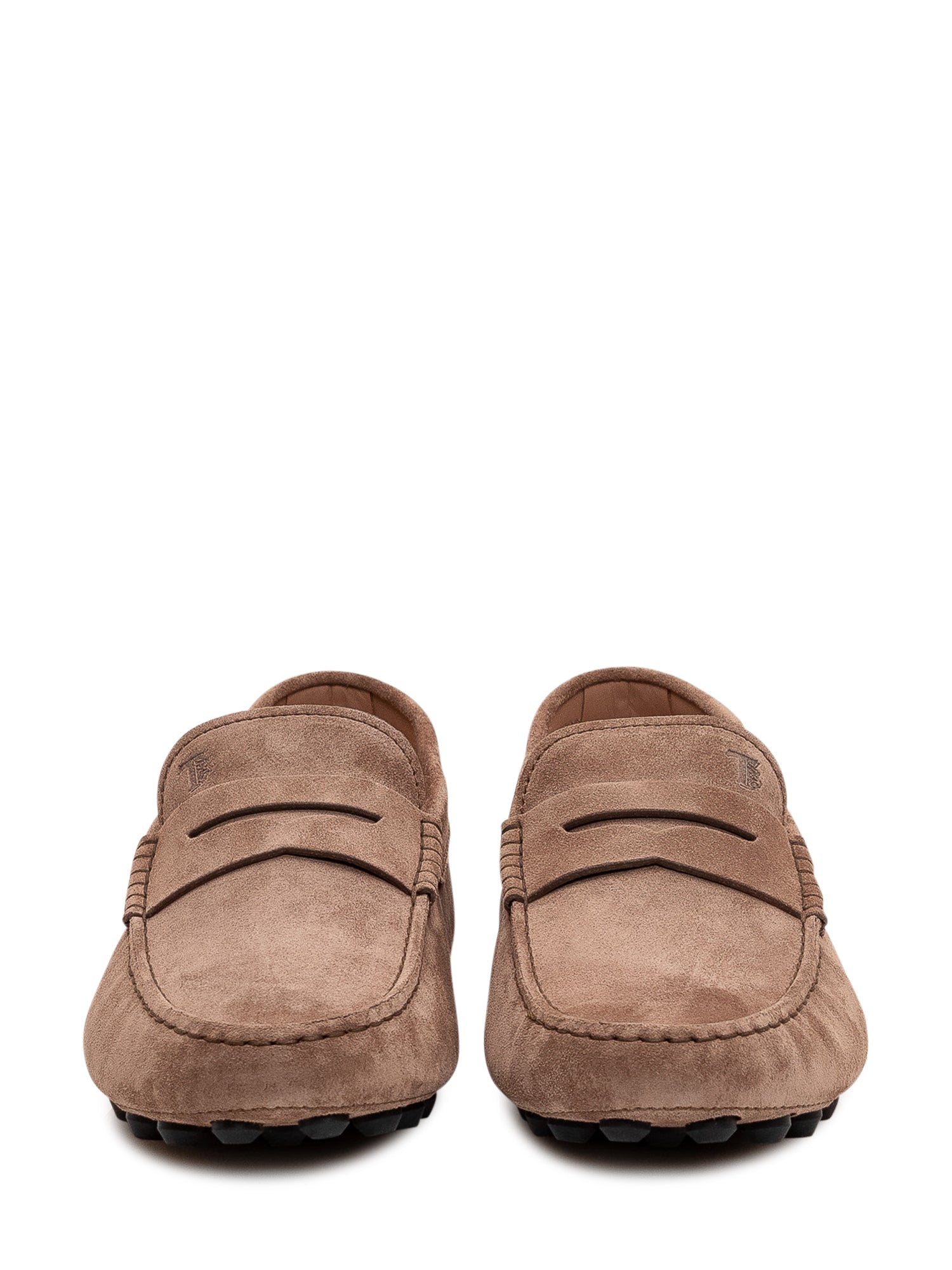 Suede loafer featuring a front penny strap and visible stitching.Reference size: US