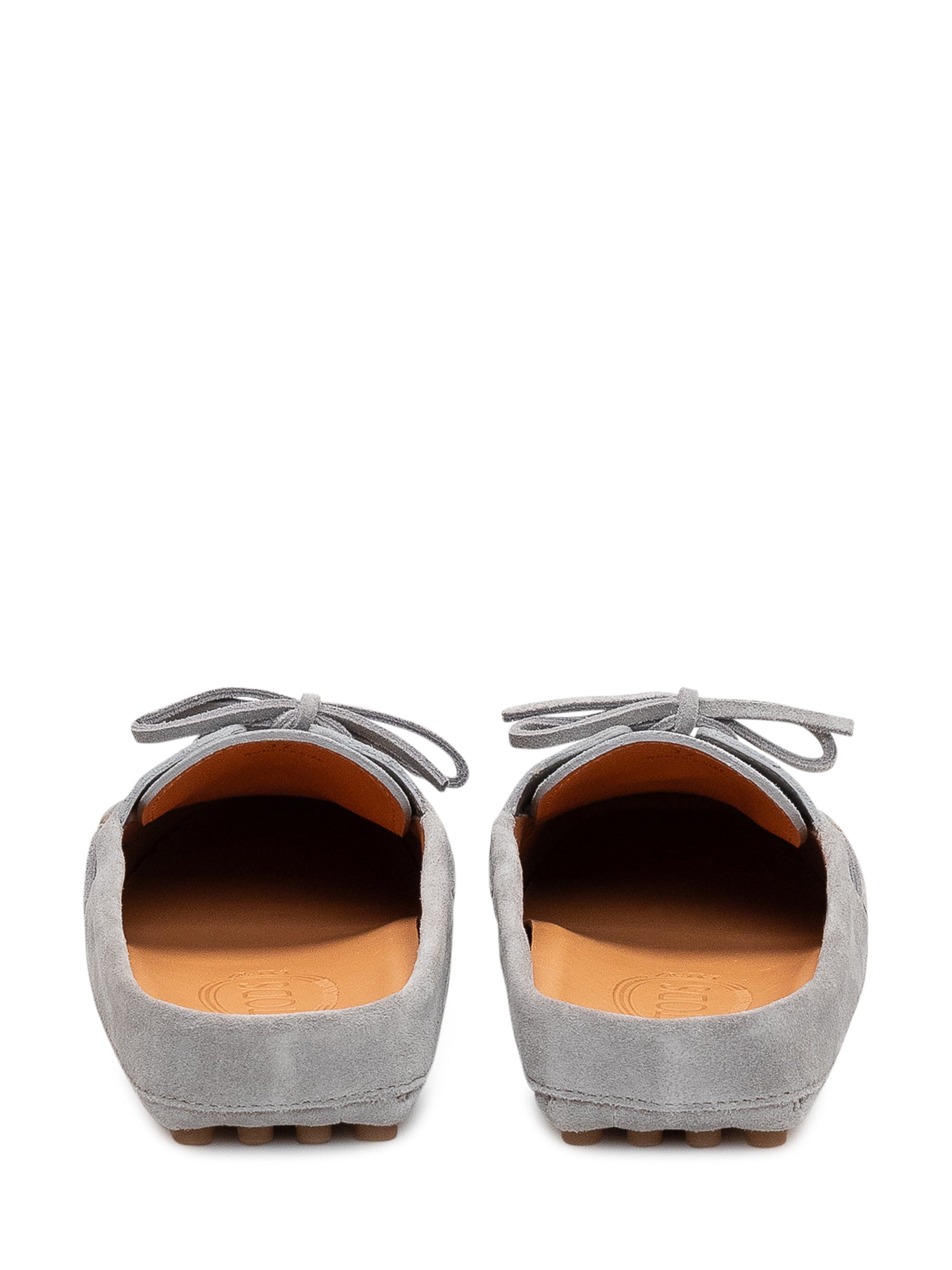 Moccasin-style sabot with slip-on construction and visible stitching.