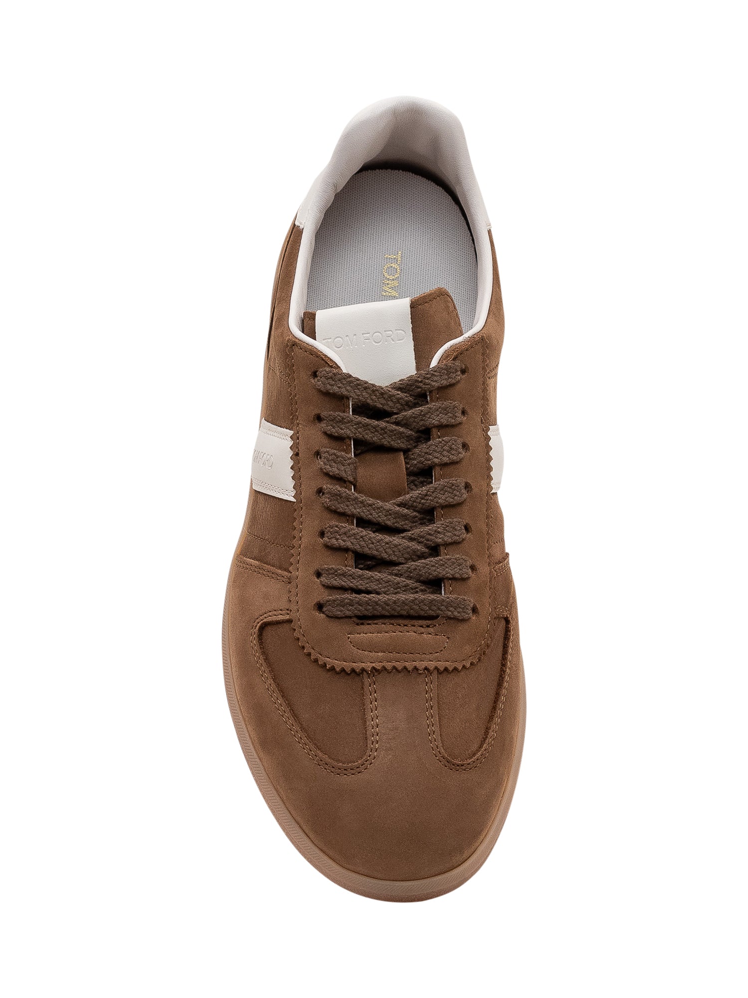 Low-top nubuck leather sneakers with lace-up closure and rubber sole. Clean and comfortable design.
