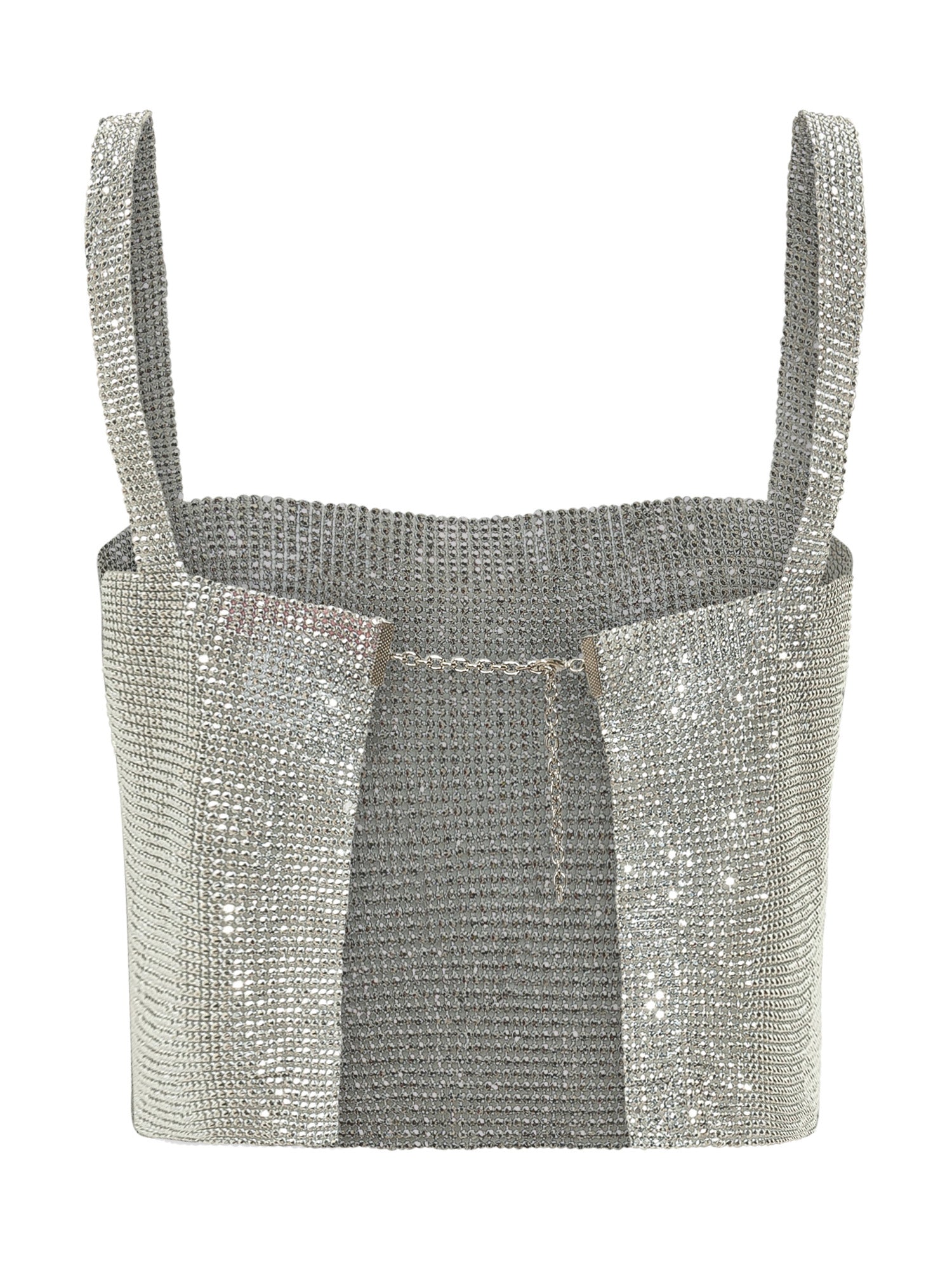 Top with wide straps and straight neckline. Compact construction and fitted line.