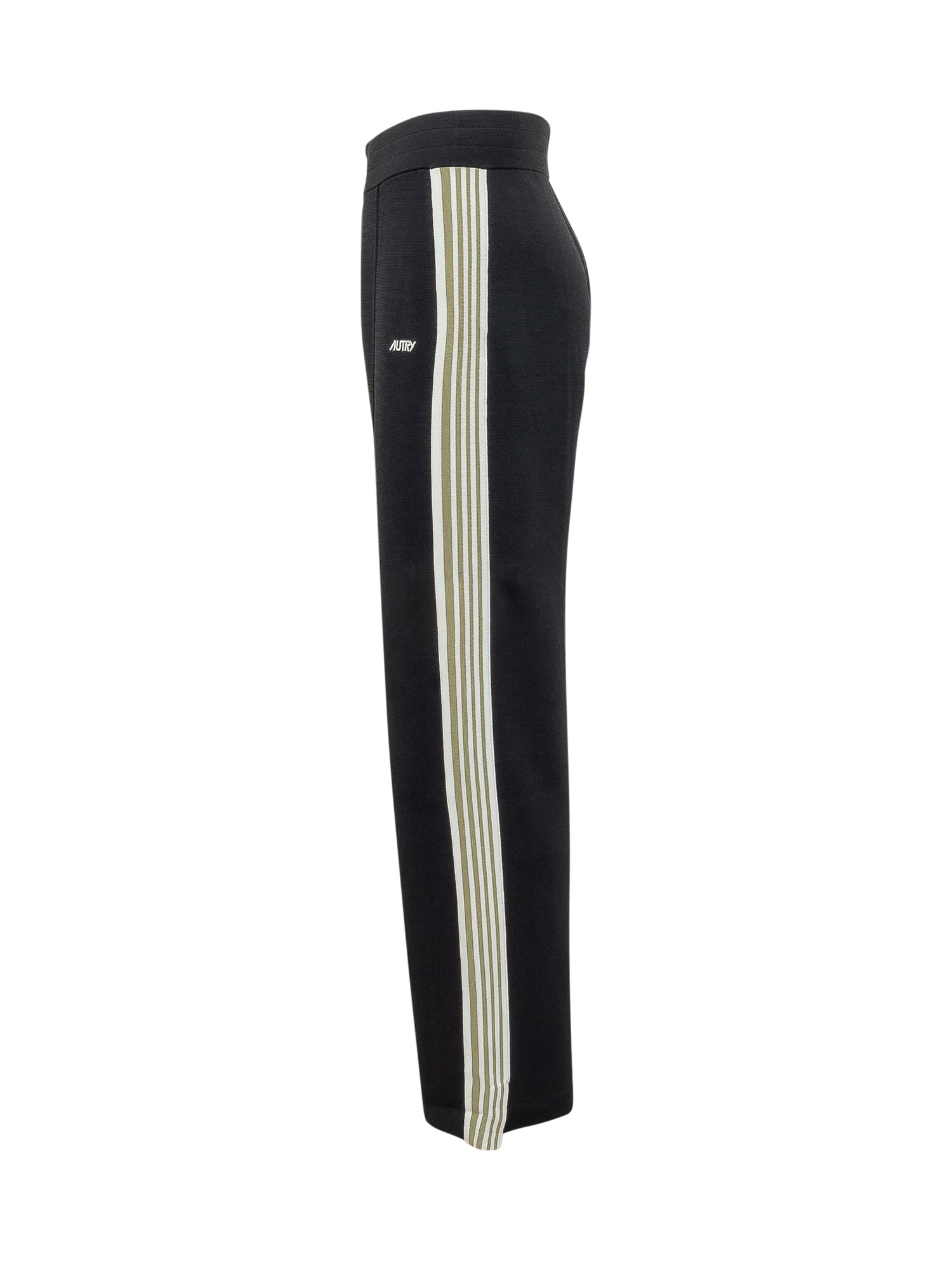 Pants with elasticated waistband and straight leg. Style with contrasting side bands and visible front logo, central seams on the leg for a defined silhouette and clean design.