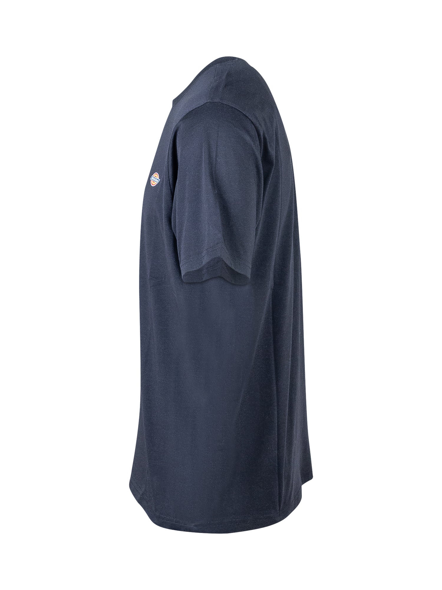 Dickies blue cotton T-shirt featuring an embroidered logo on the chest. Clean lines and regular fit for a casual, comfortable look.