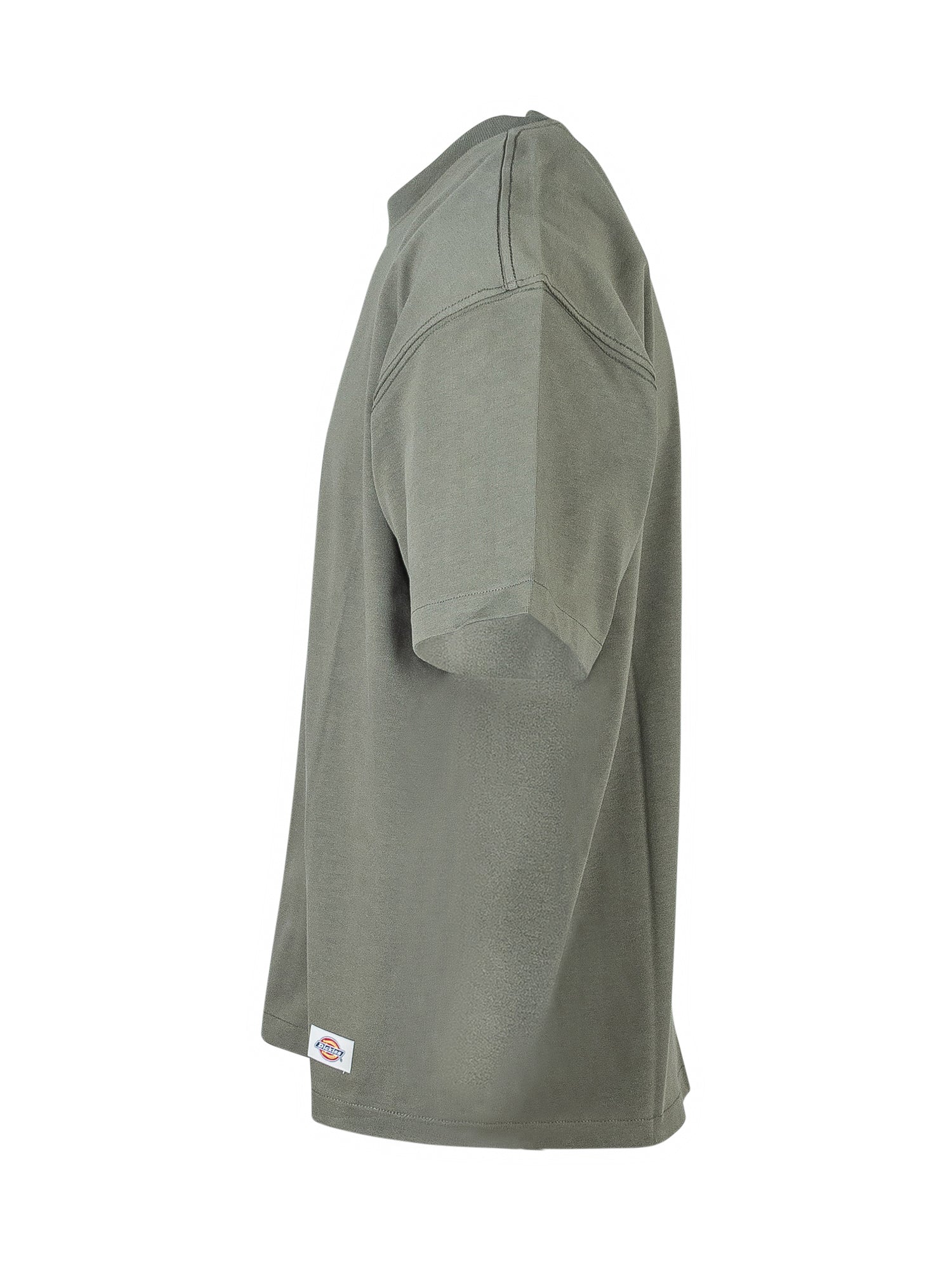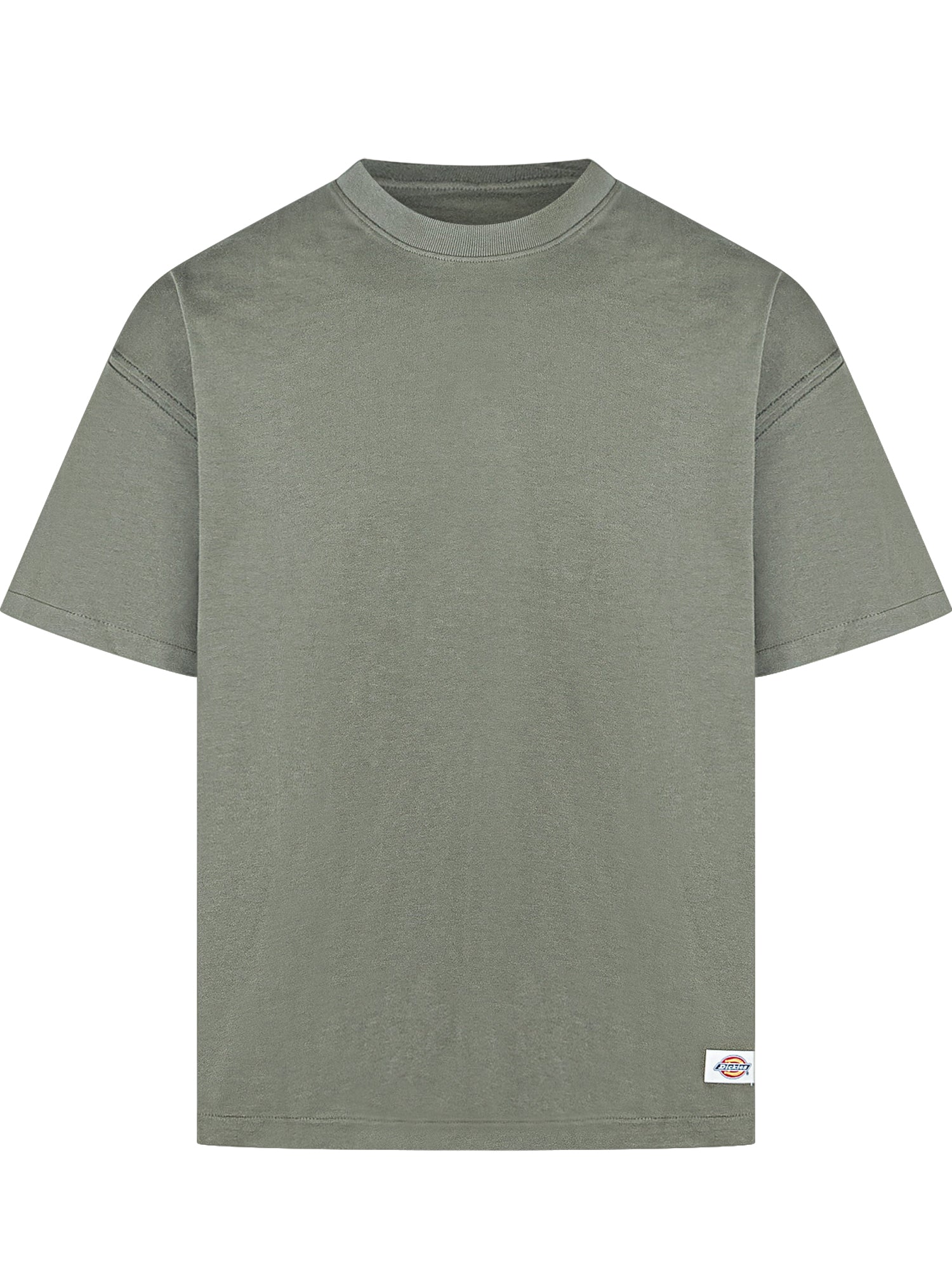 Dickies green cotton T-shirt with regular fit. Minimal design featuring a small logo patch on the hem.