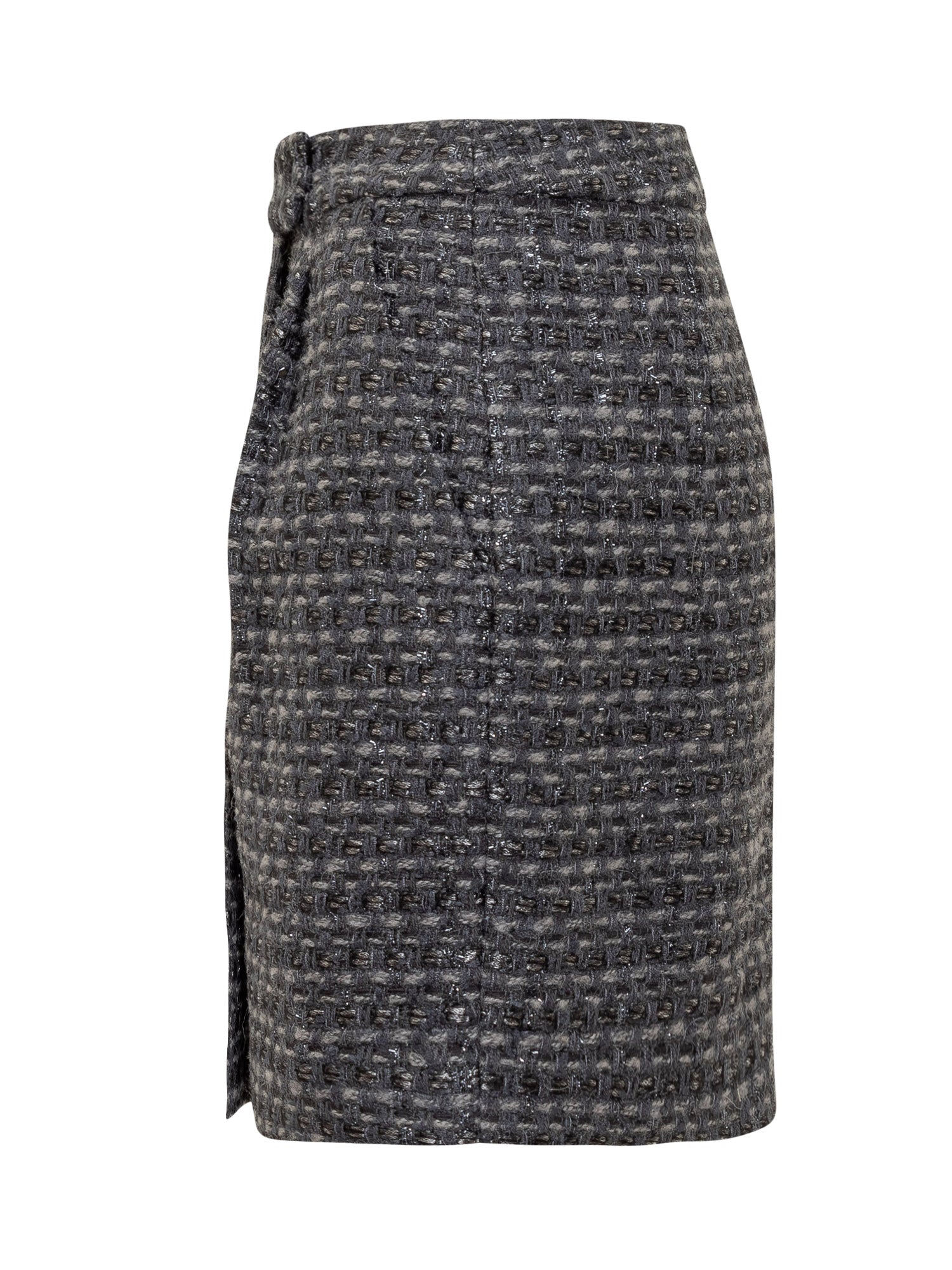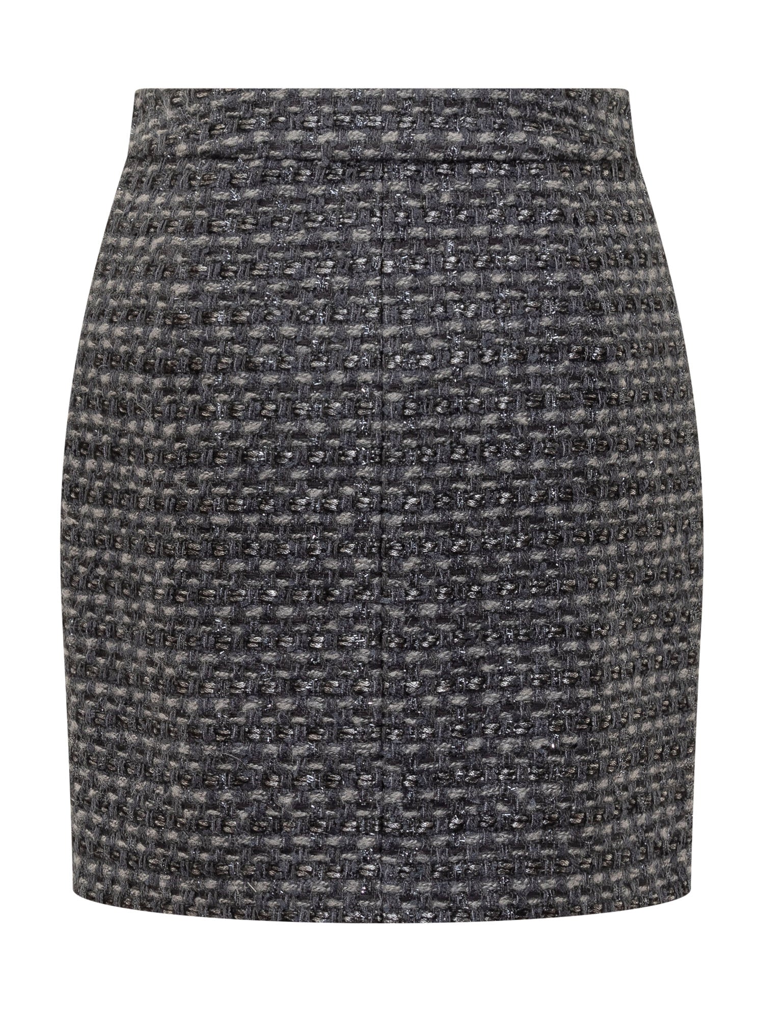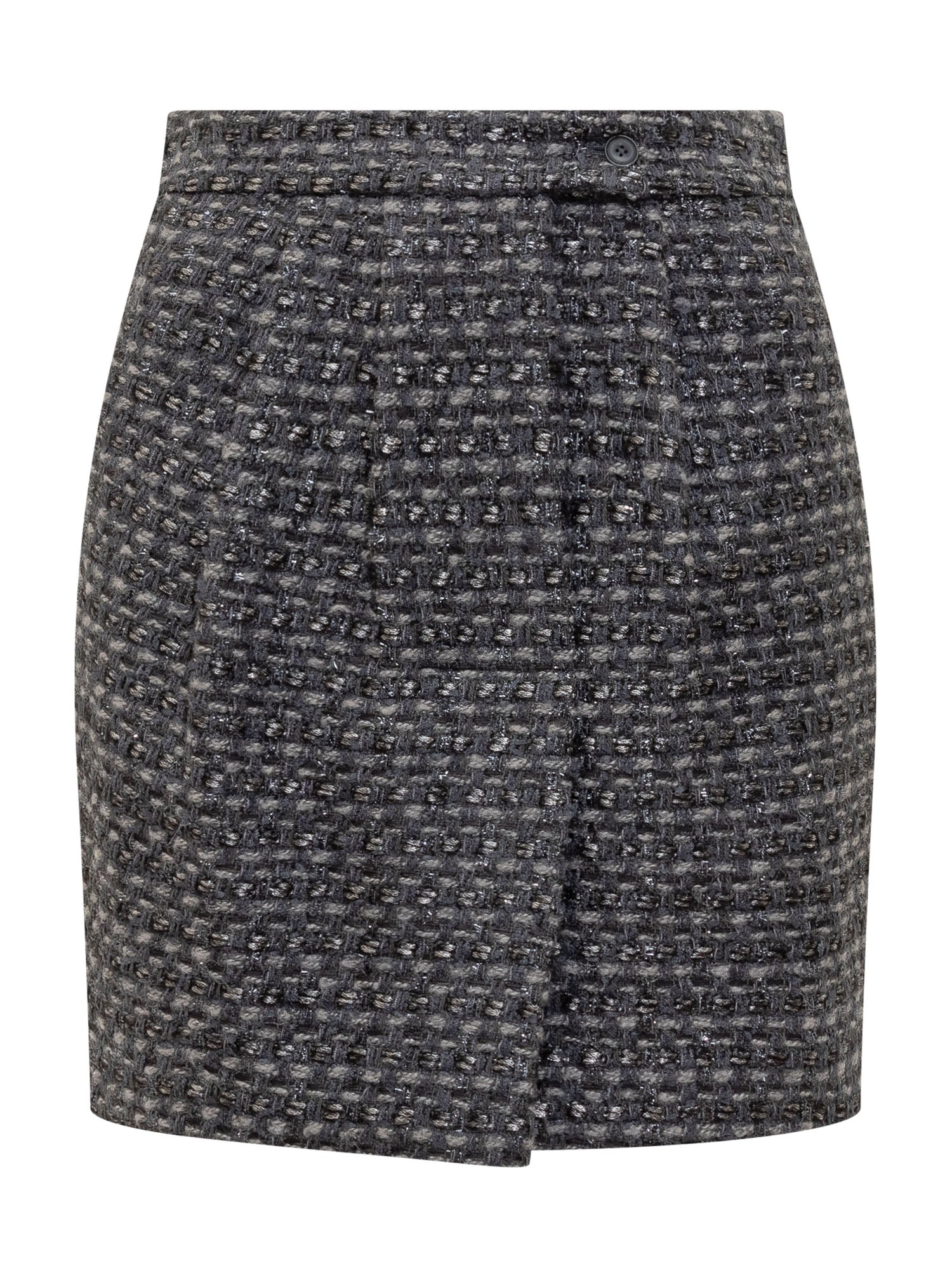 Emporio Armani grey mélange tweed mini skirt with a woven effect and side closure.