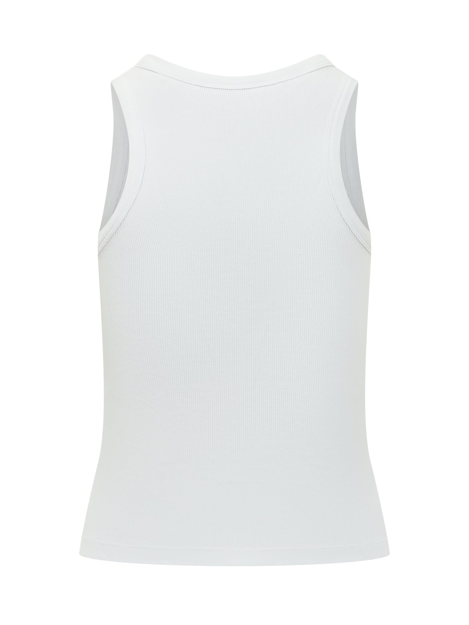 Sleeveless ribbed knit tank top with round neckline and slim fit. Clean, minimal design, perfect as a versatile base layer or worn on its own.